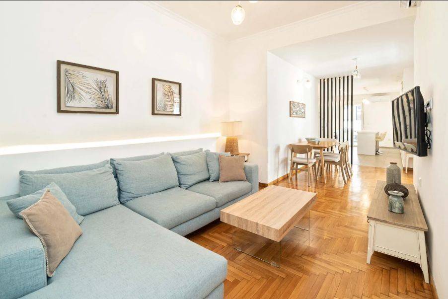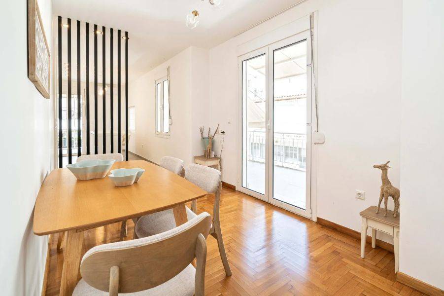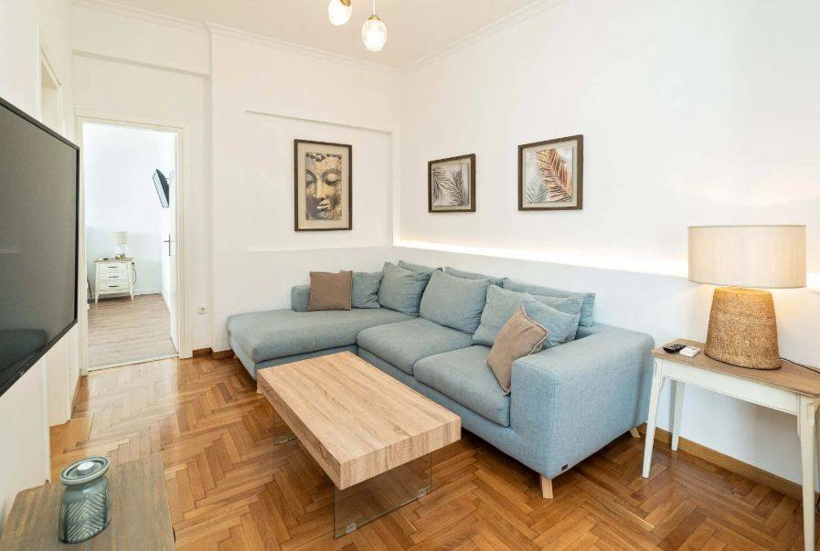 Exarchia – Apartment for Rent (Code 1954) Fully furnished and fully equipped 3rd-floor apartment in excellent condition, with a total area of 79 sq.m. The property features 2 bedrooms, 1 bathroom, a modern kitchen with electrical appliances, a spacious living room with sofa, and a dining area. It also offers a large veranda with awnings, providing bright and comfortable living spaces. Additional features include security door, aluminum window frames with double glazing, central electric heating, air conditioning, solar water heater, built-in wardrobes, and Smart TV. Energy Class B. Located in a quiet neighborhood in Exarchia, close to metro station, shops, market, parks, and public transportation. Available immediately Minimum rental duration: 3 months Price: €1,300 per month
