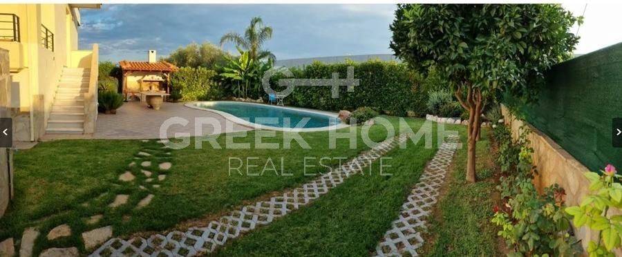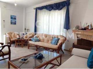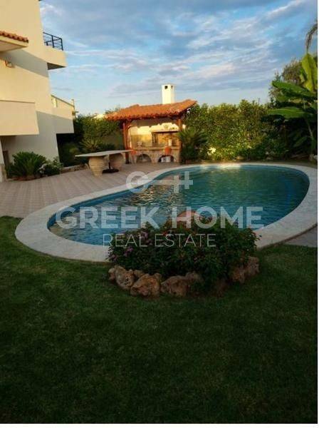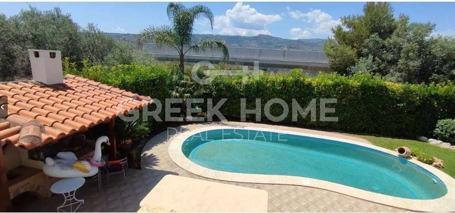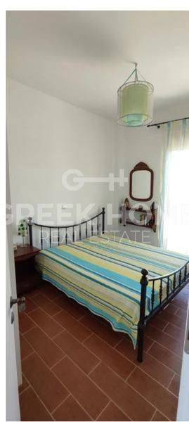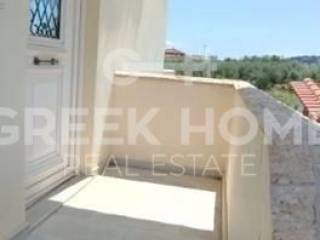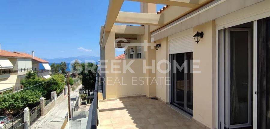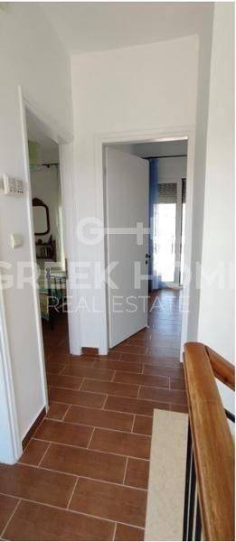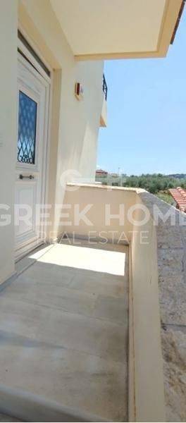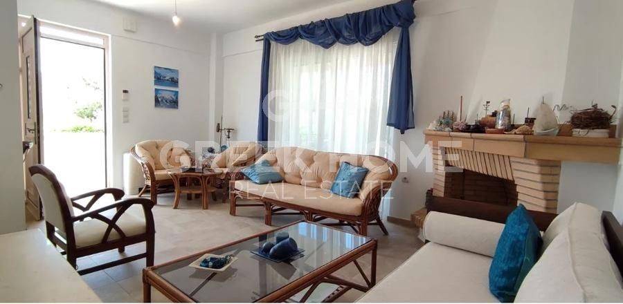 Xylokastro, Melissi - Maisonette 118sqm plot 300sqm, fully furnished, bedrooms 3, levels 2, ground floor - 1st, excellent condition, year built 2007, energy class B, living room, hall, kitchen, 2 bathrooms, wc, heating type: autonomous (heat pump), air condition, parking open space, quiet, dual aspect apartment, luminous, sea view, frontage, storage space 6sqm, fireplace, balconies, tents, garden, garden 150sqm, built in appliances, aluminum frames, double glazed windows, door screen, ceramic tiles floors, without common charges, night electricity discount rate, secure door, alarm, swimming pool, private pool, internal staircase, barbeque, pets allowed, sea front, price is negotiable, close to sea (up to 50m).
