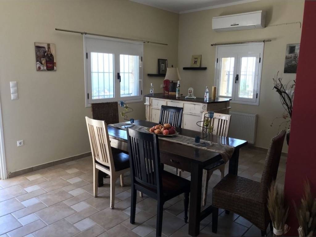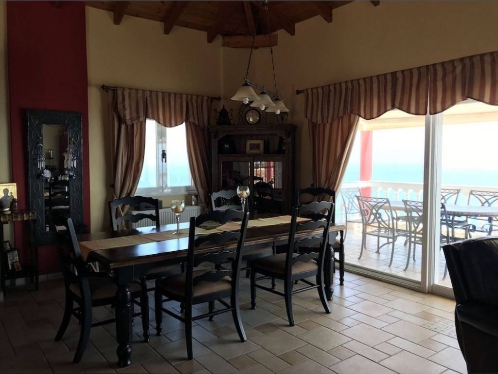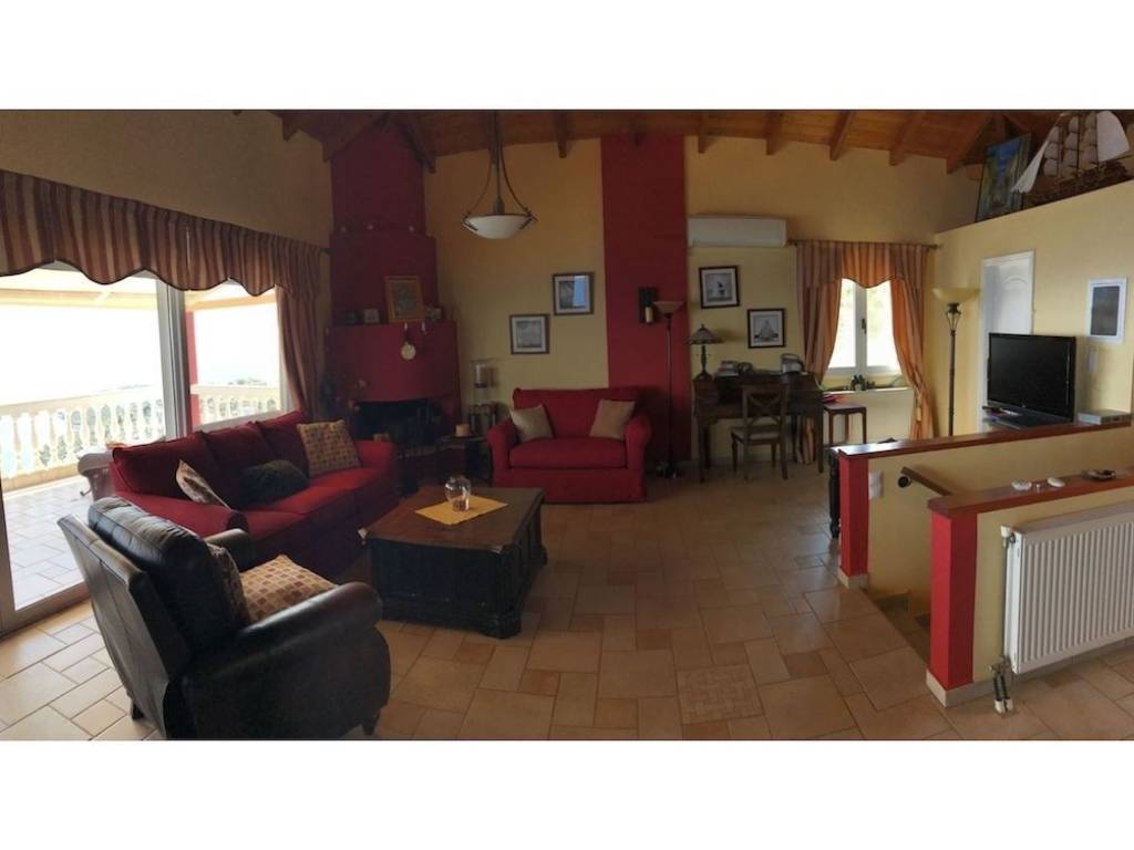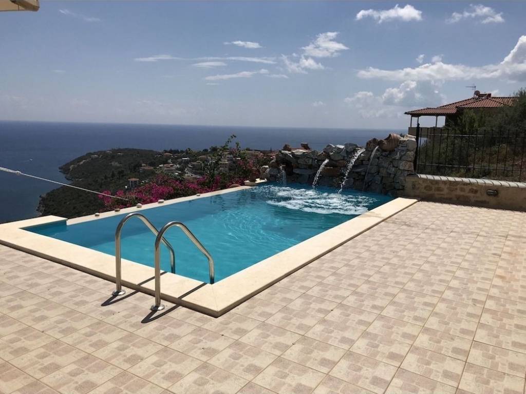 This beautiful seaview villa is located just 400 meters from the sea, on a hill with a stunning view of the Laconian Gulf and the island of Kranai.The property has three stories and was built in 2008 on a plot of 500 sqm. It is fully furnished and equipped with A/C, central heating, a fireplace, and all household appliances.The total surface of the villa is no less than 335 sqm and consists of a spacious living room, a kitchen, four bedrooms, four bathrooms, and a terrific patio with fantastic sea views. The outdoor living areas include a swimming pool of 25 sqm, facing the blue waters of the Aegean Sea, offering magical sunset views.The selling price includes an extra building plot of 500 sqm, which builds over 300 sqm.
