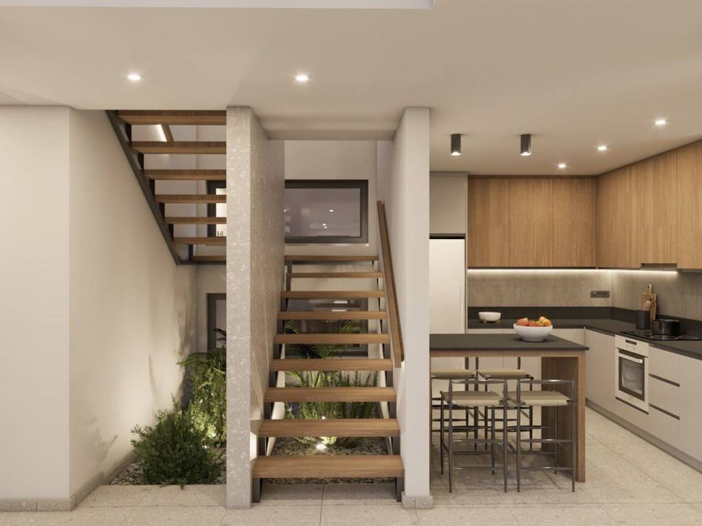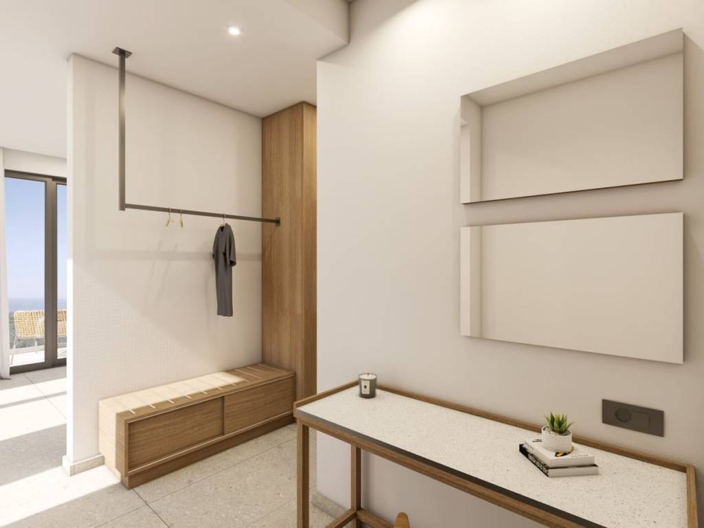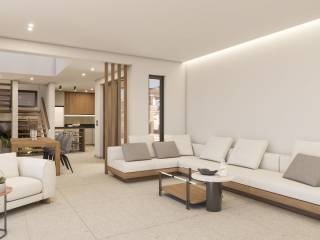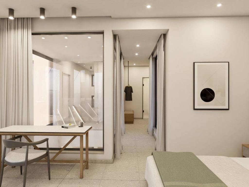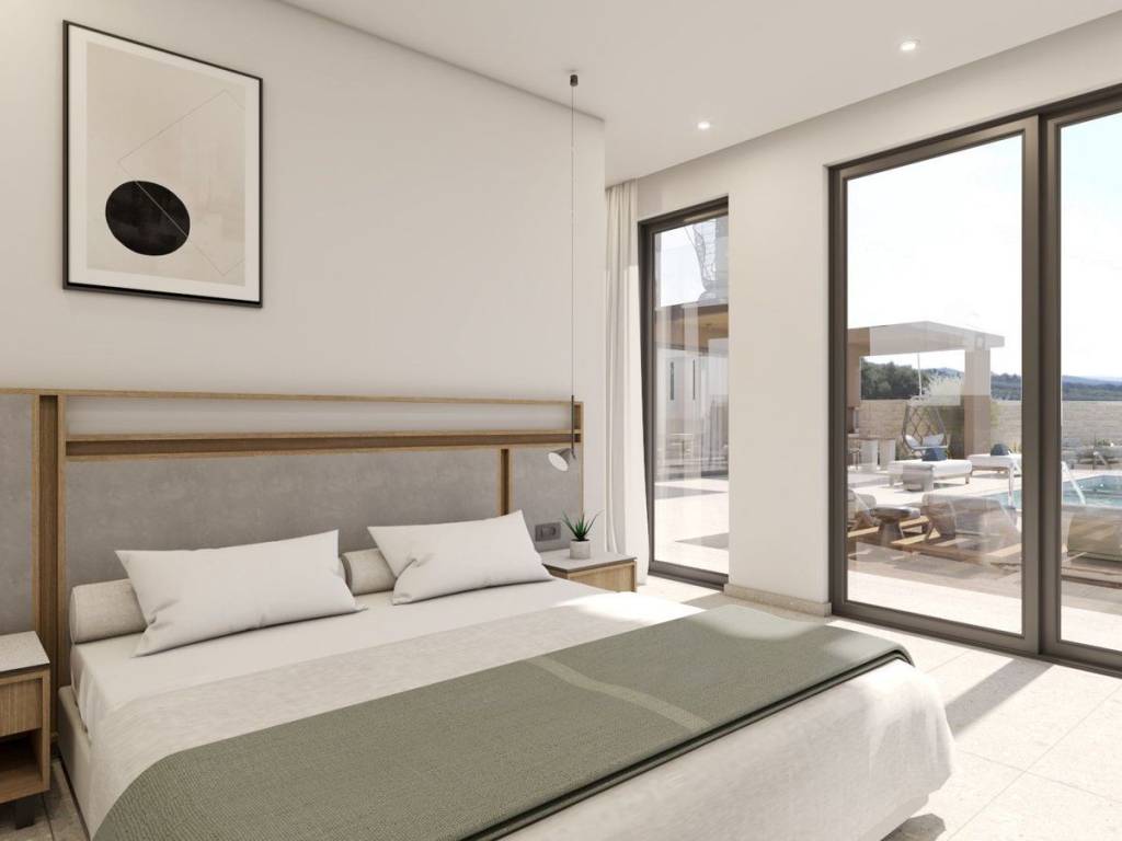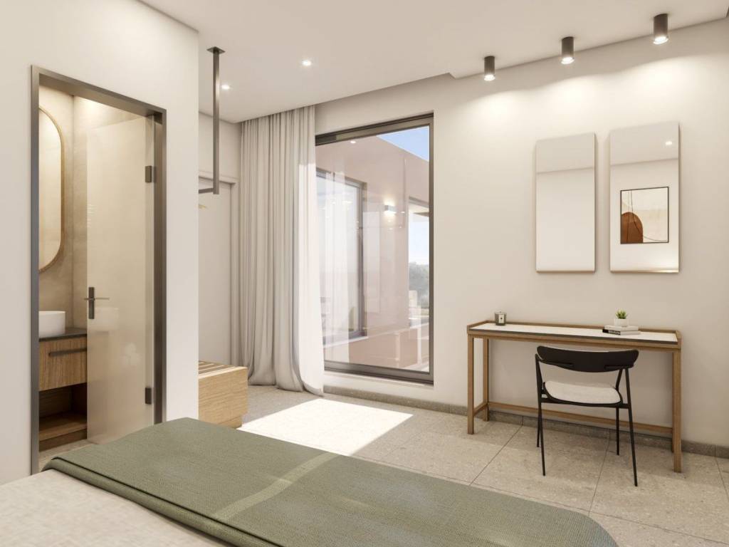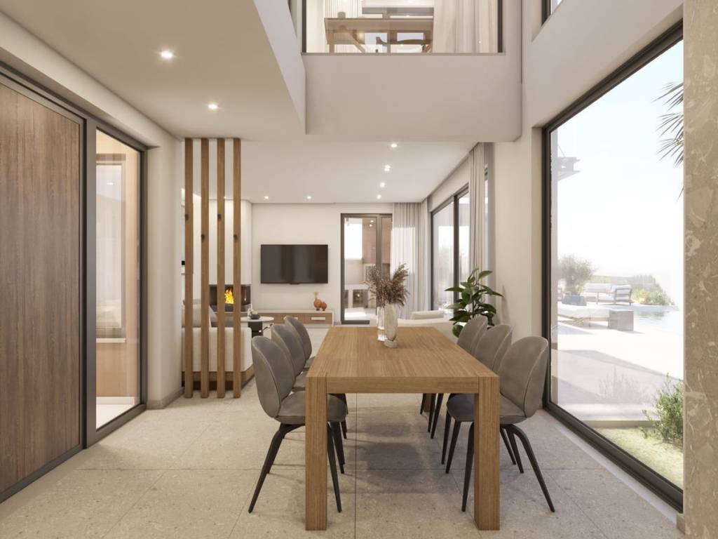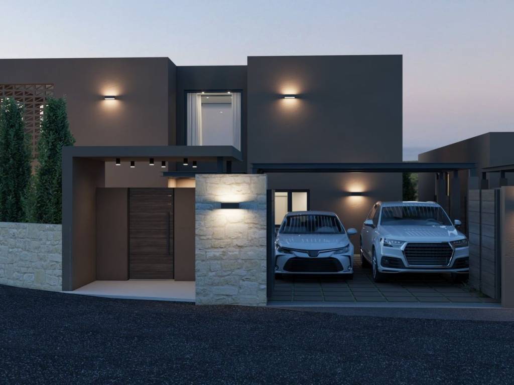 This splendid off-plan residence (196 sqm) offers unrivalled views over the Mediterranean Sea, the North coast of Crete and the eye-striking sunsets - a grand panorama that can be literally enjoyed from every corner of the property. It combines privacy with reasonable distance to some of the island's top hangouts.Entering the site from the back side, visitors are guided down to the main house via a wide white-washed pathway. Next to it, a sleek wooden carport can host up to two cars.The two-floors, 3 en-suite bedrooms and all common areas bear all the hallmarks of a tasteful, luxury accommodation. This Greek villa comprises of crisp earthy tone cubes with big windows and doors. Inside, rooms have surprising volumes thanks to high ceilings, providing comfortable movement between the seamlessly connected rooms.The house layout works as a complementary element of the plot, ensuring and revealing the astonishing view as it takes advantage of the site's inclination. The extensive open plan living space spills out to the terrace and swimming pool (42 sqm). The ground floor en-suite bedroom (23 sqm) is located towards the garden, having visual connection to the pool from one side and mesmerising views to the Platanias coastline from its private balcony. Almost every space is oriented towards the view, has natural light and access to the outdoor, a characteristic of Mediterranean architecture.A wooden stairway links organically the two levels. From there, a corridor guides the way to the remaining two bedrooms and the storeroom. Both bedrooms lead out to north-oriented balconies, which feel like an extension to the interior. You can walk out and enjoy the heightened views towards the sea and the pool garden.The real key point is the arrangement of the outdoor lounge â perfect for watching the sun set over the Aegean Sea. The developer's intention is to design a holiday residence that would allow to enjoy being outside throughout the day. The outdoor spaces are generously offering a variety of uses, embracing the outdoor way of living, an eat-in dining area and several lounging areas, both covered and exposed to the sun.Splash around while taking breathtaking vistas from the infinity pool, enjoy the Greek sun lying on the sun beds or enjoy a cold drink at the low seating lounge which is set next to the pool. A long wooden dining table sits at the right top corner of the courtyard to host your dining with friends and family. Fitted-lamps create a romantic yet inviting aura through the whole space.