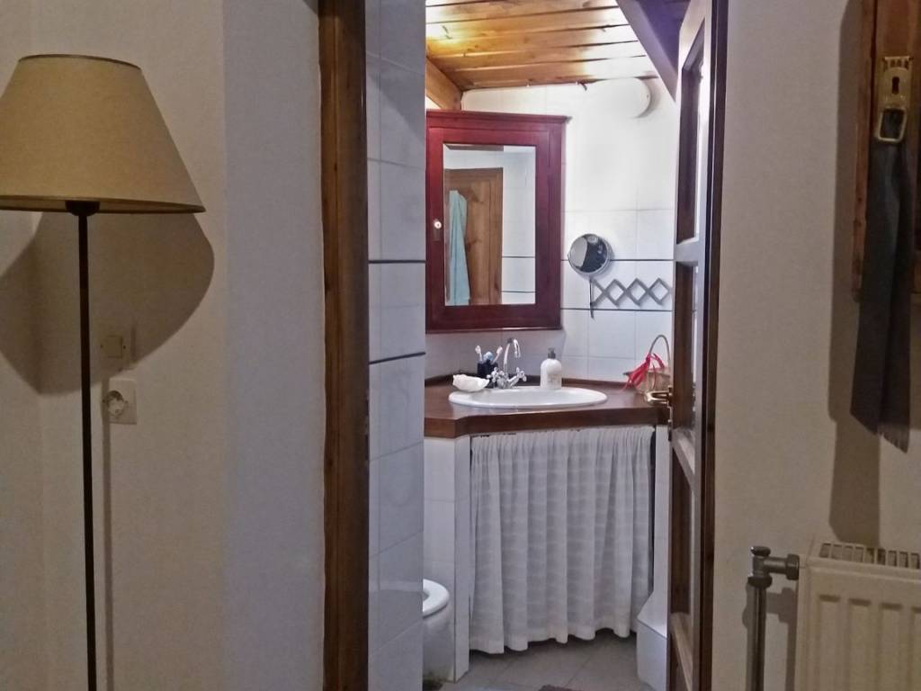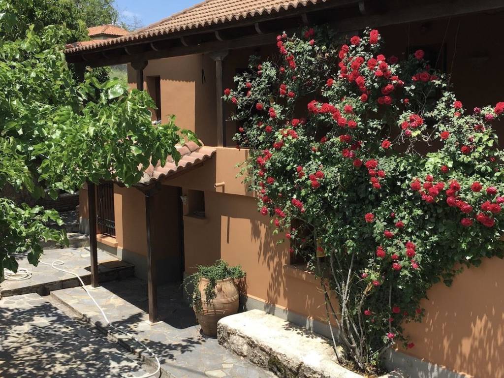 Located in the peaceful village of Velina, in Korinthia, this family home provides the double benefit of being close to the beaches of North Peloponnese and Ziria Ski Resort. An ideal base to explore the Peloponnese all year round.Developed over two floors on a 408 sqm plot, it offers 130 sqm of net living spaces in the main building and 40 sqm in the guesthouse, located in the property's yard. It should be noted that its walls are 70 cm thick. Constructed in 1929, the residence was fully renovated and modernized in 1995. It comprises an 80 sqm ground floor with a living/dining room fitted with a fireplace, an open-plan kitchen, a bedroom, a bathroom, and a spacious hallway. Located on the first floor is another bedroom, a bathroom as well as a living room with a fireplace. Flooring is tiled on the ground floor and wood on the first floor, while the floors communicate via a wooden interior staircase. Frames and windows are also wooden, and the house is sold fully furnished.A traditional outdoor wood-fired oven can be found in the garden, as well as a sheltered shed for storing wood and open-air parking. The courtyard of the house is distinguished for its lush vegetation,