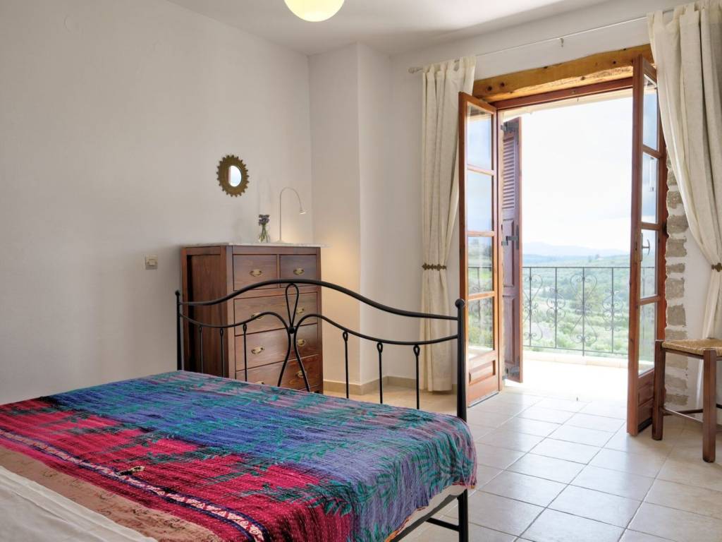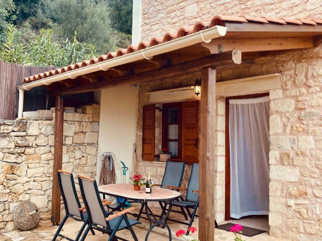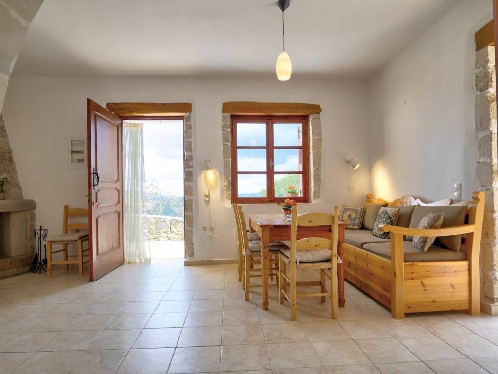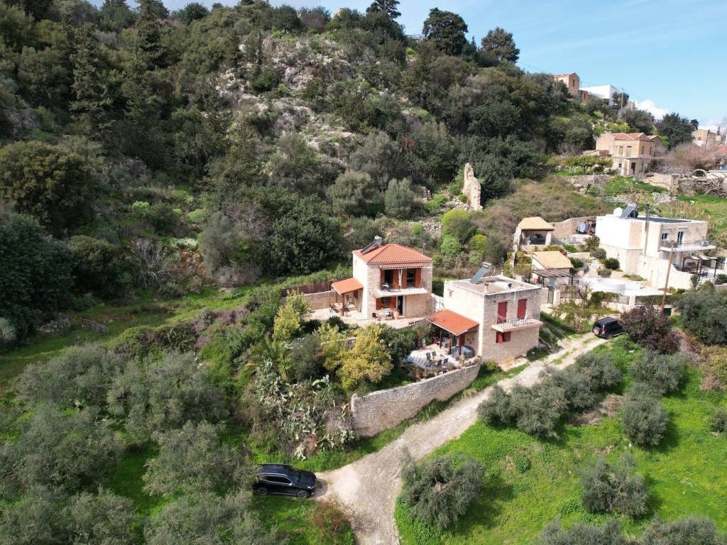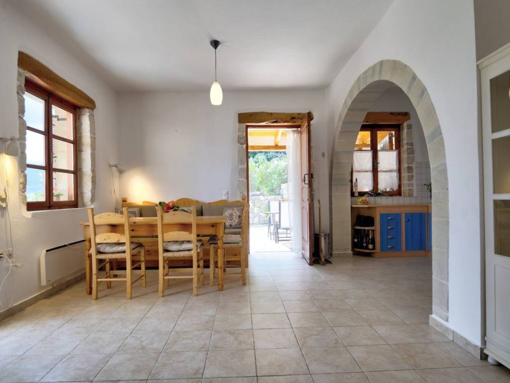 In a verdant and serene setting, yet within a stone's throw from cosmopolitan Kalyves, this village house offers tranquility and the traditional Cretan way of life.Unfolding over two floors, this stone village house is developed on a 238 sqm plot and offers 86 sqm of living spaces. The ground floor features the open-plan living/dining room and kitchen. The living room features a beautiful stone fireplace and opens to the patio where one can bask in the sun, enjoying panoramic mountain and countryside views.A flight of stairs takes us to the upper floor, housing the two bedrooms and bathroom. Both bedrooms open to balconies, offering nice views. The house is sold furnished and equipped, including most white goods.The outdoor area of the house is paved with stone. The house was built on the site of a former olive oil mill, and the millstones have been incorporated into the fireplace and the garden. The landscaped garden features a selection of local flora. The outdoor area of the house has a pergola for open-air dining and entertaining, while there is also an outdoor shower.