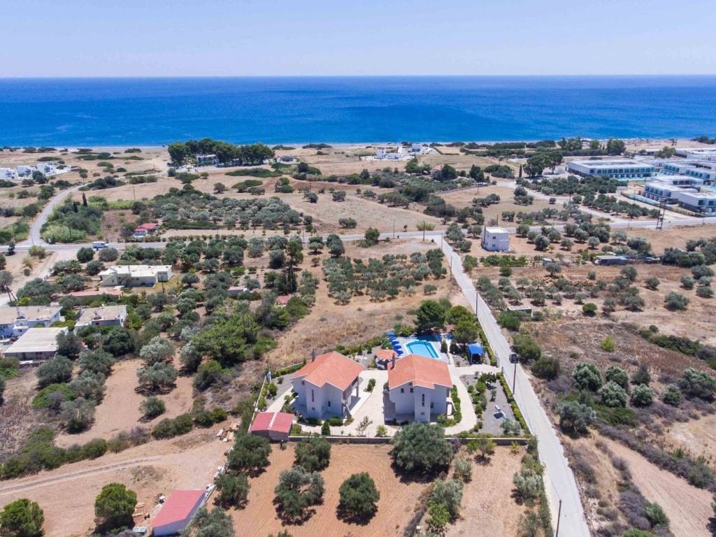 Discover two elegant, furnished villas for sale together on the south-eastern coast of Rhodes. Built in 2000, these almost identical homes offer a total living space of 283 sqm, combining comfort, style and breathtaking views of the Aegean Sea.