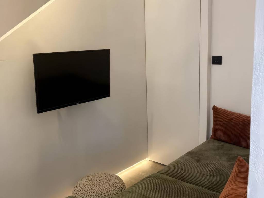On the first floor, you will find two comfortable bedrooms, sharing a WC, as well as access to private balconies with pleasant mountain and countryside views. Frames are triple-glazed aluminium and fitted with fly nets.