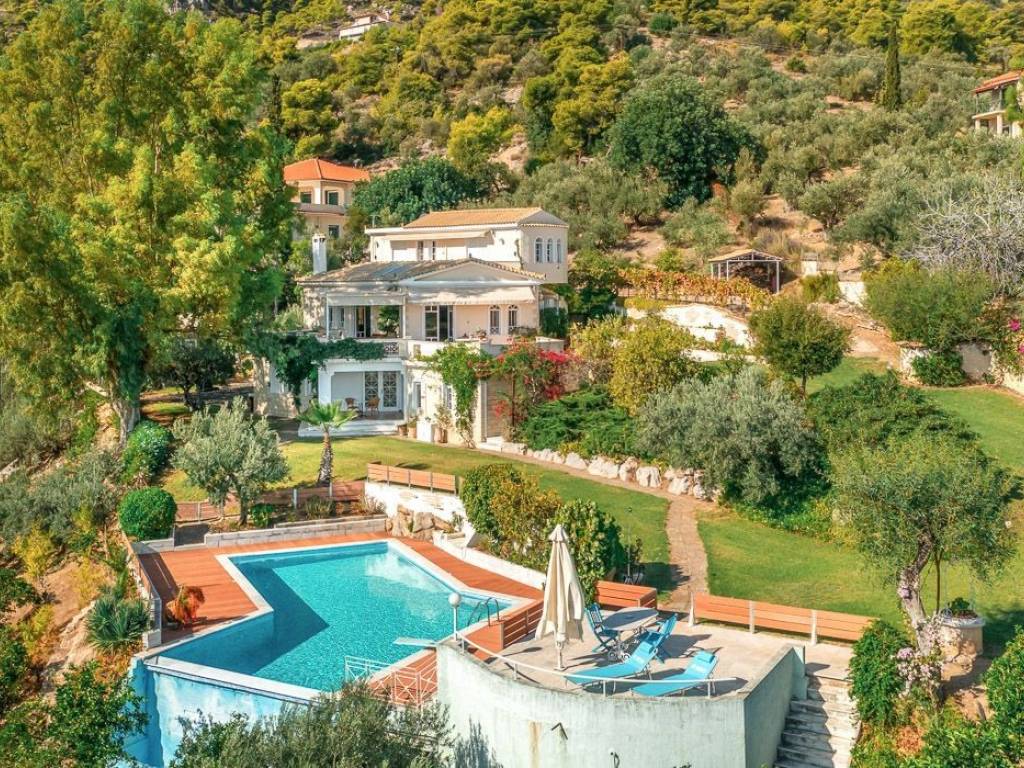 Located in the charming area of Nea Epidavros, in a peaceful and privileged setting just 800 meters from the sea, this exceptional Mediterranean villa spans 400 sqm and sits on a beautifully landscaped 5,700 sqm plot, offering complete privacy and unobstructed views of the Argolic Gulf. The residence unfolds across three levels, seamlessly blending elegance with the comfort of modern Mediterranean living. The elevated ground floor features a spacious and bright living and dining area, a fully equipped kitchen, and direct access to large terraces, ideal for relaxation and entertaining. The upper floor hosts the impressive master suite, complete with a private office and expansive terraces that enjoy panoramic sea views. The lower level includes four comfortable bedrooms and three bathrooms, providing ample accommodation for family and guests. The outdoor area is equally impressive, with a meticulously designed garden featuring ornamental and fruit-bearing trees, while the 78 sqm swimming pool serves as the ultimate focal point for relaxation and leisure. This is a high-specification property that perfectly combines the tranquility of nature with close proximity to the sea, making it an ideal choice both as a private residence and as a luxury rental investment opportunity. New Epidaurus, a magical seaside destination. A place you visit as a tourist but end up loving like a local. The village atmosphere is different. The air is lighter. A stroll through the cobbled alleys, the route to the beach—three kilometers—between houses and orange groves, a visit to the Square of the National Assembly, and suddenly you feel so small before the grandeur of the landscape and yet important enough to become part of it. From the dense pine forest of Akros to the river, and from the beach to the gorge, a picturesque landscape that makes you blend winter and summer in your mind. And then you realize that this small place has everything you need to find what matters most—yourself! One of the largest beaches of New Epidaurus. If you want to combine tranquility with a beach full of life, then Aliotou Beach is the best choice. The beach, about 1,000 meters long, is covered with lush vegetation and gives a sense of relaxation, despite being one of the busiest beaches in New Epidaurus. The beach has organized sections as well as unorganized ones, and has café-bars and restaurants that offer the summer entertainment you are looking for. One of the most beautiful villages in the Municipality of Epidaurus. Distance from Nafplio 43 km Distance from the Ancient Theatre of Epidaurus 19 km Distance from Banks, School 19 km Distance from Athens 119 km