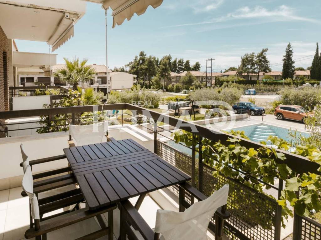 GERAKINI BEACH (Sithonia, Halkidiki, 60km from Thessaloniki) 2-storey maisonette with garden & swimming pool, ground floor, 90 sq m, luxurious, fully furnished and equipped, in an excellent residential complex with a communal swimming pool, of remarkable construction, by well-known manufacturers, lower side of the central provincial road Limenos-Gerakini, at a distance of 60m. from the sea. INTERIOR It consists of 2 levels, ground floor & 1st floor, with an open kitchen-living room with fireplace and W.C., staircase, (2) rooms, bathroom. It has heating with 2 A/C and a fireplace in the living room. Ideal for 4 people. LOCATION A residential resort area in Sithonia, Halkidiki, 60km from Thessaloniki, as a pole of attraction for many tourists and Thessalonians, consisting mainly of complexes of maisonettes and apartments, of high demand, which offers various services, supermarkets, taverns, restaurants, KTEL bus stop, 70 km from the airport, 15 km from Polygyros hospital, 20 km from Moudania. IDEAL For 4 PEOPLE/PROFESSIONALS looking for a furnished-quality residence, in a residential complex with a swimming pool, with excellent construction standards, next to the sea. - Price: €1.000 (Property Code: 8-2172486) - For more information or clarifications do not hesitate to contact us. - Contact Hours 09:00 - 21:00 Monday - Friday and 09:00 - 18:00 on Saturday. - The real estate fee for renting a residential or commercial property is an agreed rent + VAT. - The address and pin on the map are indicative of the location of the property. - All information and features of the property are based on information provided by the principal. - In order to indicate the property, the identification and the VAT NUMBER ("A.F.M.") are necessary according to LAW N.4072/11-04-2012 Official Gazette 86A.