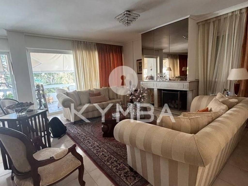 Chalandri, Center, Floor Apartment For Sale, 140 sq.m., Property Status: Amazing, Floor: 4th, 1 Level(s), 2 Bedrooms (1 Master), 1 Kitchen(s), 1 Bathroom(s), 1 WC, Heating: Autonomous - Natural Gas, View: Unlimited, Building Year: 1988, Energy Certificate: C, 1 parking(s), Floor type: Wooden floors + Tiles, Features: Elevator, Security door, CCTV, Storage room, Fireplace, Night stream, Electric Appliances, Double Glazed Windows, Window Screens, Balcony Cover, Balconies, Pets Allowed, Luxury, Airy, Roadside, Bright, AirConditioning, Solar water system, Back yard (Garden), Renovated, Price: 550.000€. KYMBA, Tel: 2103641333, email: info@kymba.gr