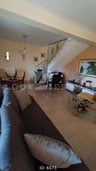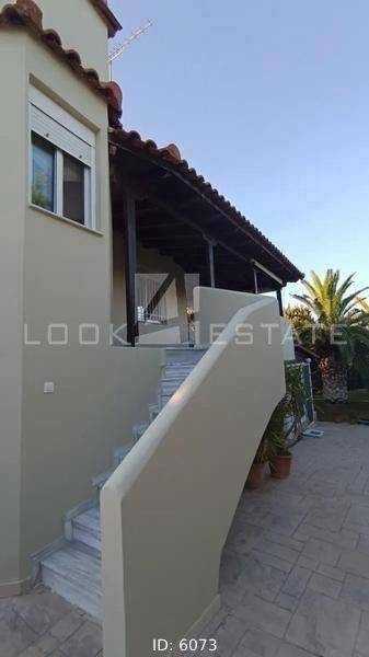 Anthidona, Drosia - Detached House 145sqm plot 700sqm, bedrooms 3, levels 2, ground floor - 1st, very good condition, year built 2009, energy class D, living room, kitchen, heating type: individual unit (oil), air condition, parking, quiet, dual aspect apartment, luminous, frontage, storage space 15sqm, solar heater, fireplace, balconies, large balconies, balcony 50sqm, garden, garden 400sqm, aluminum frames, double glazed windows, door screen, ceramic tiles floors, separate kitchen, without common charges, three phase electricity, night electricity discount rate, secure door, alarm, surveillance cameras, pets allowed, within city plan, residential zone, access from asphalt, close to sea (up to 500m).