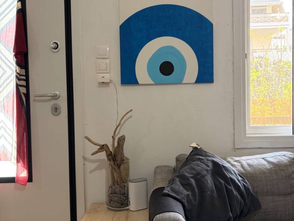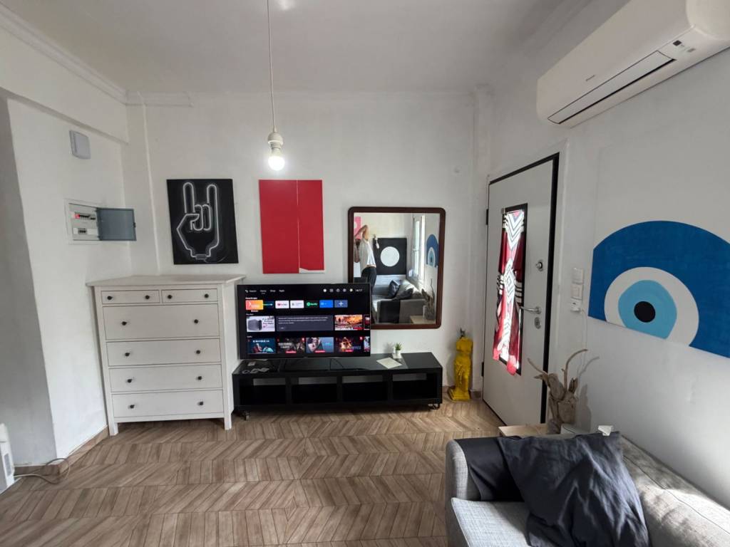 Fully renovated in 2026 studio on the mezzanine floor, which has 1 new daikin air conditioner, , aluminum frames with double glazing, security door, consists of 1 single room, separate kitchen and 1 bathroom. It is located 6 minutes from the electric train of Kallithea station , near Chrystomos Smyrna to the beach. No utilities. Terribly insulating and sunny. Separate entrance from its own staircase. All furniture from ikea, smeg fridge, Siemens washing machine