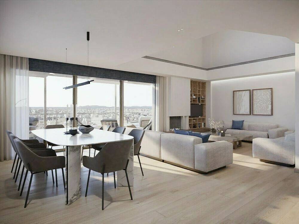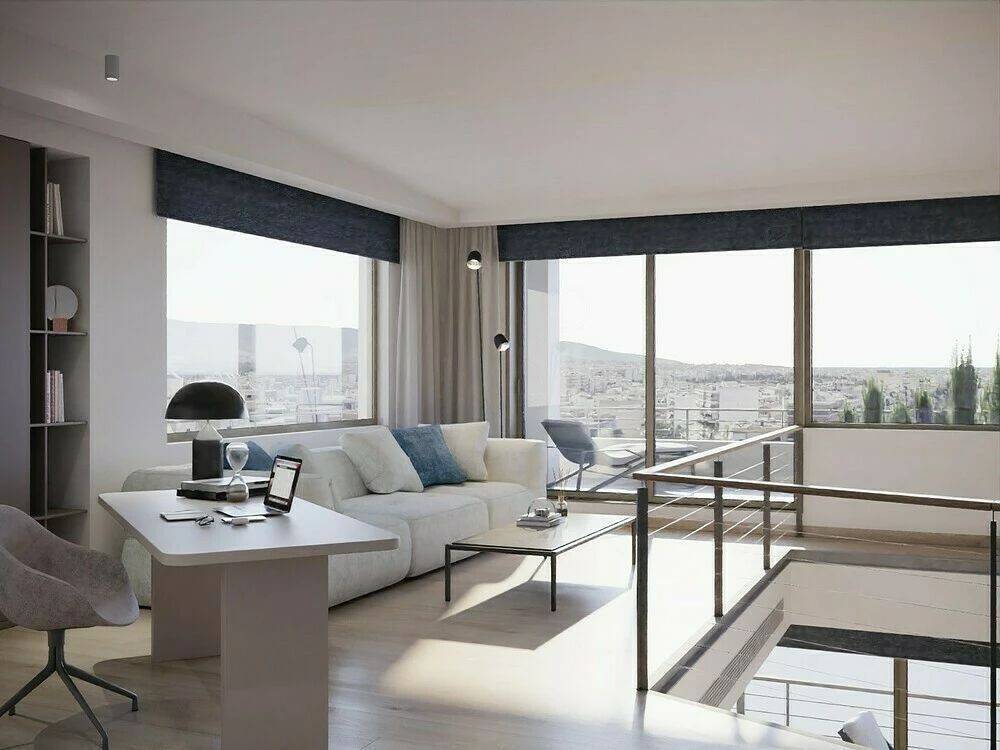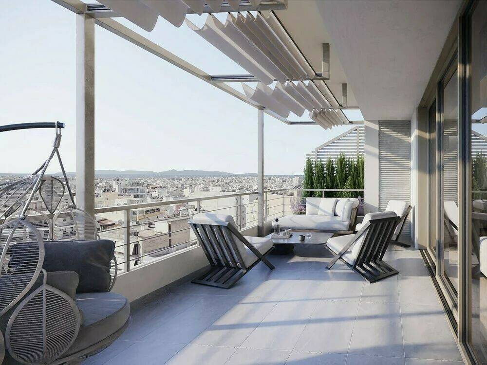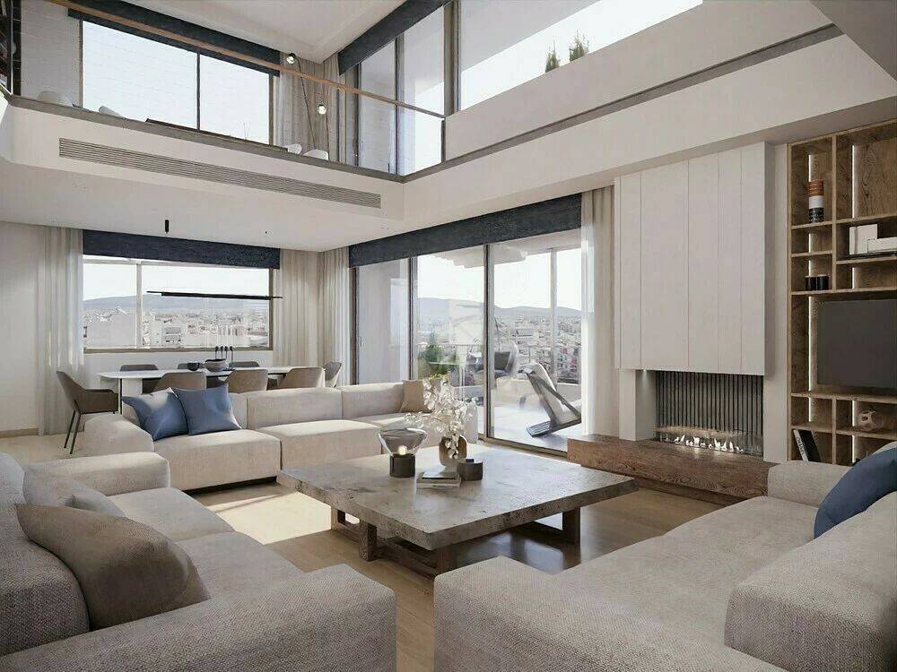 NEA SMYRNI, Upper: Unrestricted view, newly built maisonette 175 sq.m., 7th and 8th floor, in a plot of 311 sq.m., bright, frontage, airy, in excellent condition, has: 3 bedrooms with tiled floors, 3 bathrooms and wc, closed kitchen with enough cupboards, large living room and dining area with tiled floors, natural gas for heating, energy fireplace, solar, security door, alarm, double glazing, verandas, electric awnings, parking for 2 driver's seats. ( code: M-16166 ) individual heating natural gas, Painted, porch, floors (Floor) tiles, double glazing, satellite receiver, staircase, solar triple energy, view (View) Unlimited, situation (Status) excellent, air conditioning, kitchen (Kitchen) closed - separate, luxury residence, security door, frontage, alert, natural gas, bright, energy class A+