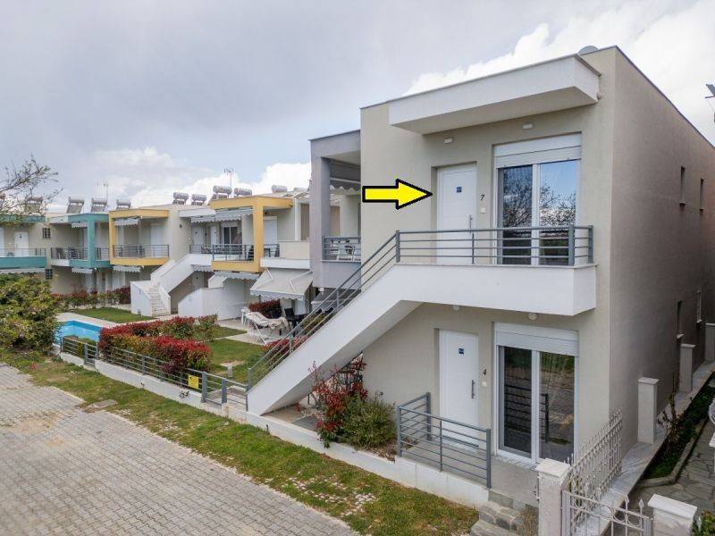 First-floor apartment of 33.36 sq.m. in the settlement “DANAI” in Paralia Ofriniou, Kavala. It consists of an open-plan living room–kitchen area, one bedroom, and a bathroom. It features synthetic window frames with screens, tiled floors, two air conditioning units, and a solar water heater. In the outdoor area, the complex offers a shared swimming pool and is landscaped with lawn and ornamental plants. It is located just 430 meters from the sandy beach of the area and constitutes an excellent choice both for private use and for investment. Year of construction: 2023 For the property inspection presentation of ID card is necessary.