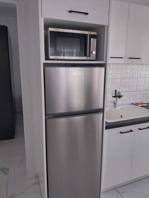 For rent from My Home Properties, a renovated second floor studio of 41 sq.m. in Nea Kallikratia. It consists of one room, living room, kitchen, bathroom and terrace. It has heating, air conditioning and a parking space. It is delivered furnished and equipped with electrical appliances. The price includes electricity. There is the possibility of renting for a season at the price of 5,000 euros. It is located in a quiet area with a sea view, close to shops, supermarkets, public transport and 400m from the sea. To indicate the property, it is necessary to present a police ID and VAT number.