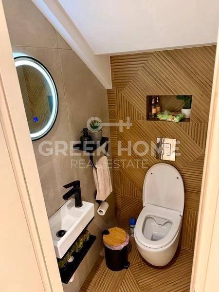 Moschato - Full floor Maisonette 135sqm plot 170sqm, partially furnished, bedrooms 3, master bedroom, levels 2, 3rd - 4th, penthouse, excellent condition, year built 2023, energy class B, living room, hall, kitchen, bathroom, wc, heating type: individual unit (natural gas), air condition, parking ground floor,2, quiet, dual aspect apartment, luminous, unobstructed view view, frontage, painted, drop ceiling, electric roller shutters, storage space 18sqm, solar heater, fireplace, balconies, large balconies, elevator, built in appliances, thermal shut-off frames, double glazed windows, door screen, ceramic tiles floors, handicap ramp, three phase electricity, secure door, alarm, surveillance cameras, video doorbell, luxurious, internal staircase, smart home, playroom, satellite, internet, pets allowed, price is negotiable, investment property, special offer, close to market (up to 100m).