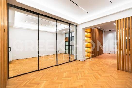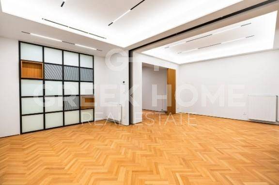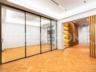 Kolonaki - Apartment 132sqm bedrooms 2, master bedroom, 4th, penthouse, fully renovated, year built 1980, energy class E, living room, kitchen, 2 bathrooms, wc, heating type: autonomous (natural gas), air condition, quiet, dual aspect apartment, luminous, frontage, painted, electric roller shutters, balconies, elevator, thermal shut-off frames, double glazed windows, door screen, wood floors, secure door, luxurious, pets allowed.