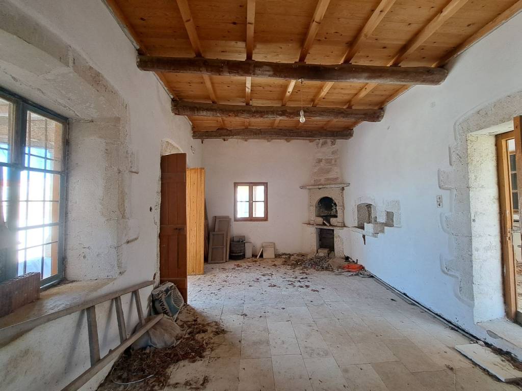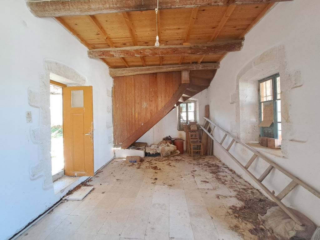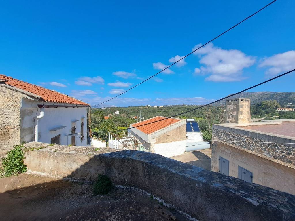 This spacious two-storey village house of 182 m², built in traditional Cretan architectural style, is located in the heart of the village of Agios Pavlos, just a short drive from Gavalochori. Layout Ground Floor – 128 m² Living room with a traditional Cretan fireplace, offering access to a covered balcony and the inner courtyard Large bedroom with independent access via the courtyard Spacious kitchen, also accessed from the courtyard First Floor – 54 m² Two bedrooms Balcony with views over the village and the surrounding mountains Outdoor Areas The stone-paved inner courtyard is enclosed by a stone wall, creating a private and authentic atmosphere. Within the courtyard are the ruins of a former stone building (36 m²), offering additional restoration or design possibilities. Property Features Stone-built walls Traditional tiled roof Wooden windows, shutters, and doors Stone flooring on the ground floor Wooden floors on the upper level The property requires renovation, making it ideal for buyers wishing to restore and personalize a traditional Cretan home. Plot & Building Potential The total plot size is 345 m², allowing for the construction of an additional 58 m² of residential space. This is an excellent opportunity to acquire a character-filled village property with significant expansion potential, suitable for a family residence, holiday home, or investment project in one of Crete’s most authentic regions.