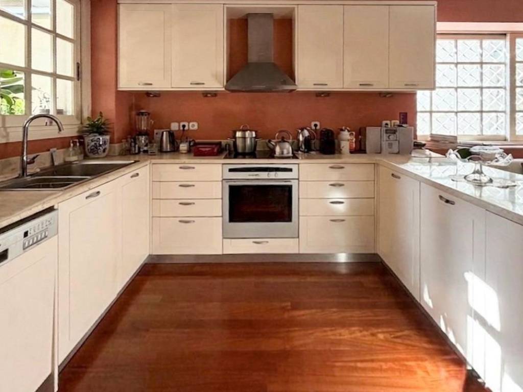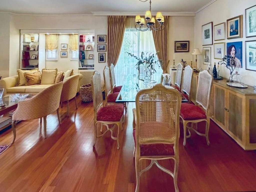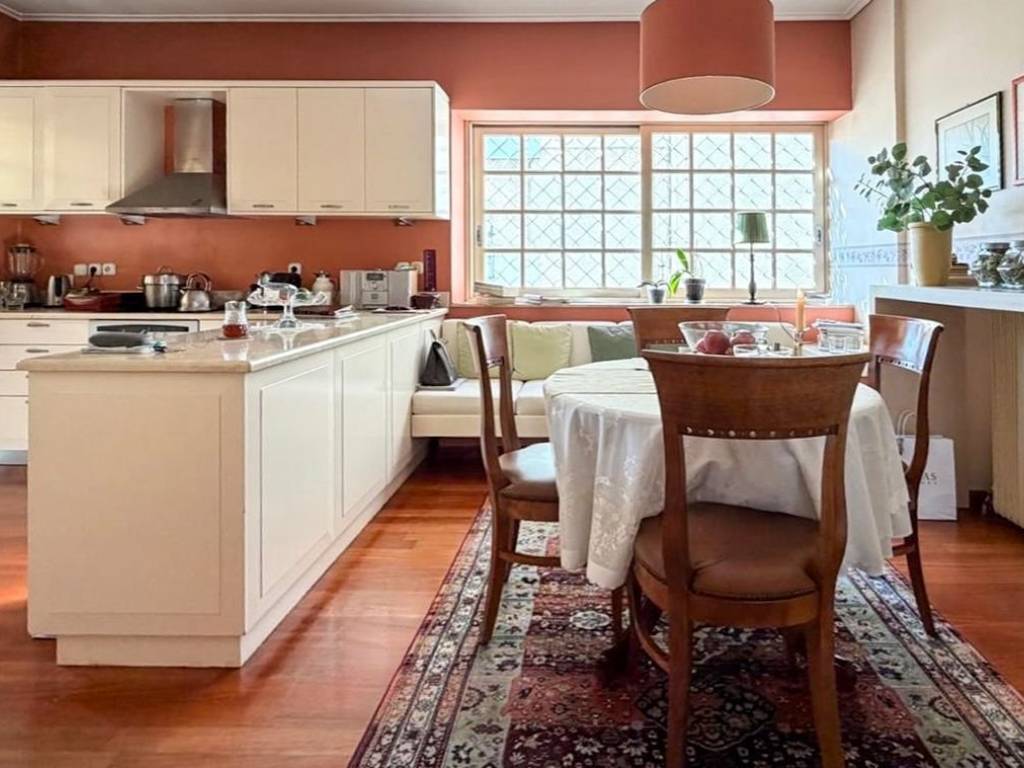 In the most sought-after area of Nea Smyrni, next to the Grove, this unique corner 181 sq.m. apartment, with east and south orientation, offers a high standard of living and abundant natural light throughout the day. The impressive reception area, approximately 60 sq.m., with a fireplace, blends seamlessly with the large, lush front terrace and the BBQ, creating a refined setting both for moments of relaxation and for elegant entertaining. The apartment is designed with comfort and functionality in mind, featuring 3 spacious bedrooms + 1 smaller one that can be used as an office or guest room. It includes 2 bathrooms and 1 WC, while the master bedroom is a private wellness space, with an ensuite bathroom and an additional area that currently functions as a personal gym, with the option to be converted into a walk-in closet. The large, fully equipped kitchen, with wonderful natural light and direct access to a terrace, offers everyday convenience and is accompanied by a casual sitting or dining area, enhancing the sense of functionality and practicality. The residence is complemented by two parking spaces in the underground garage and an 11 sq.m. storage room, while the fireplace, autonomous natural gas heating, solar water heater, built-in BBQ on the lush terrace, and pre-installation for an alarm system enhance the quality, security, and comfort of everyday living. This is a bright, dual-aspect apartment that exudes elegance, tranquility, and comfort. An ideal choice for those seeking a high-end lifestyle in one of the city’s most privileged locations. Location: Nea Smyrni is ideally located between central Athens and the sea, just 3 km from Syntagma Square, the Acropolis, Plaka, and Flisvos Marina. Unique features: A vibrant, family-friendly, and authentic neighborhood, Nea Smyrni has an interesting history: it took its name from the former Greek city of Smyrna in Asia Minor, now called Izmir, where refugees who fled in the 1920s settled. Nea Smyrni Square lies at the heart of the city and is impressive, with fountains, shops, restaurants, stylish cafés, and bars to suit all ages, interests, and budgets. Nea Smyrni Park (the grove) is a large green oasis with pine and cypress trees, attractive to families and to those seeking outdoor exercise. Just 5 minutes away are two of Athens’ most dynamic cultural venues: the Onassis Cultural Centre and the Stavros Niarchos Foundation Cultural Center, which houses the Greek National Opera and the National Library of Greece. Accessibility: Easy and frequent access to the city center by tram, buses, and metro. The airport is only 45 minutes away, while the Port of Piraeus is 20 minutes away. Investment potential: Nea Smyrni is a renewed and up-and-coming neighborhood that will continuously increase in value.