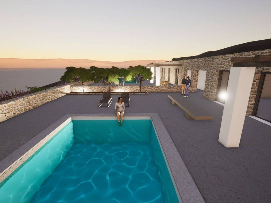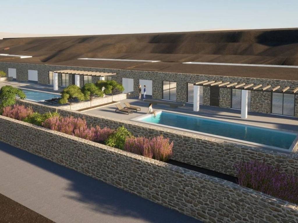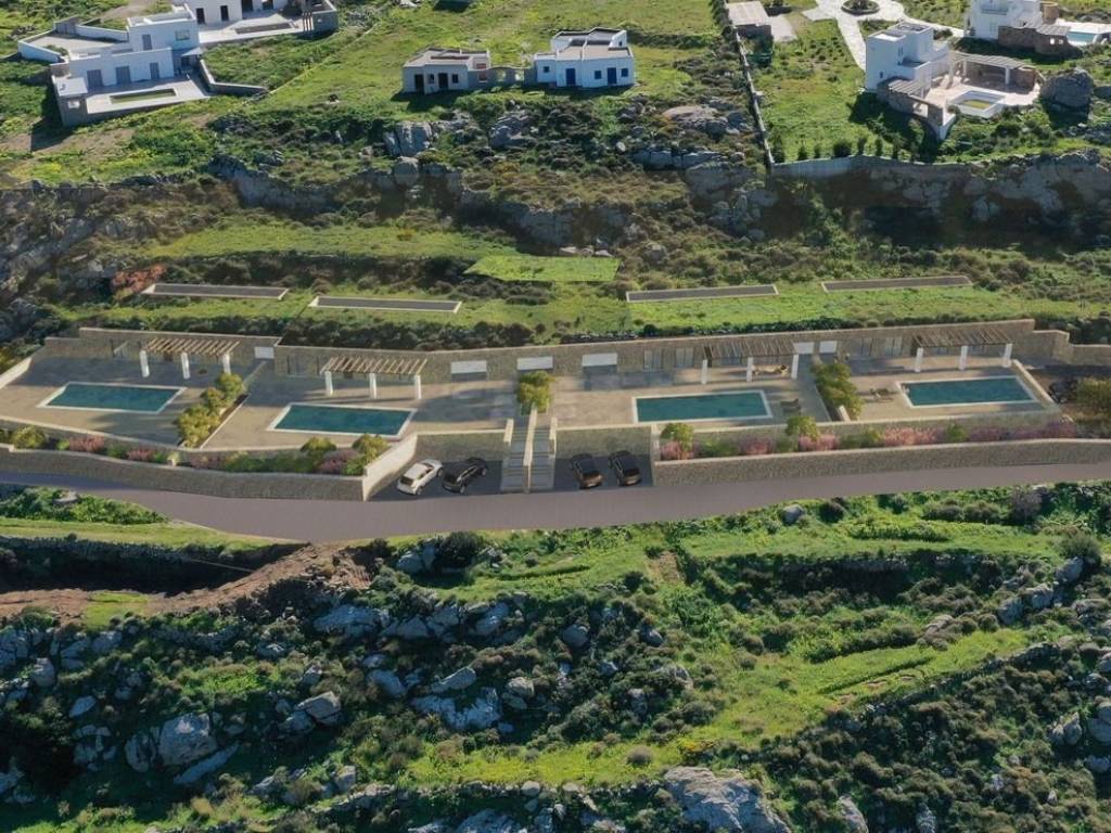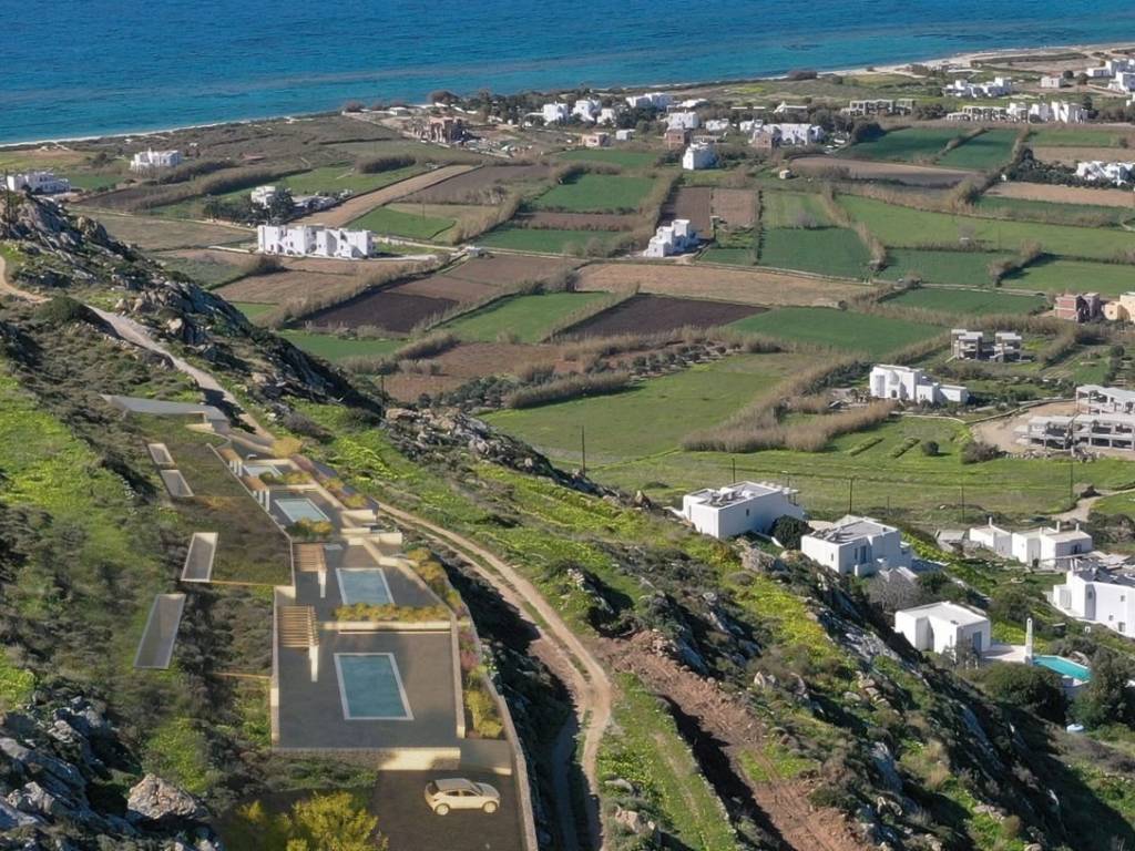 Set on the western side of Naxos, in an elevated position overlooking Plaka Beach and the island’s western coastline, this distinctive residential development is located in a peaceful setting approximately 1 km from the sea. The project comprises four contemporary cave residences, thoughtfully designed to blend harmoniously with the natural landscape while maintaining privacy for each home. Built into the hillside, the residences follow an architectural approach distinct from the typical Cycladic style, becoming an organic extension of the terrain rather than standing apart from it. Inspired by the traditional stone terraces and retaining walls of the Cyclades, the design combines natural stone façades with planted roofs featuring local vegetation, allowing the homes to integrate seamlessly into their surroundings. Each residence offers a total internal area of 124 sq.m. and includes a living and dining area, a kitchen, one master bedroom, two additional bedrooms, and two bathrooms. The outdoor areas are designed for comfort and privacy, featuring a private swimming pool of 32 sq.m., a garden of approximately 1,400 sq.m., a shaded outdoor sitting area with pergola, and open parking space for two vehicles. Located in a quiet area with easy access to the beach, the property combines privacy, sea views, and contemporary design, making it suitable for both private use and investment. Location: Naxos is the largest and most fertile island of the Cyclades. Naxos is the largest and the largest and most fertile island in the Cyclades, located in the center of the Cyclades, south of Mykonos and east of Paros. Unique Features: Naxos is a magical destination ideal for those who wish to fill their holidays with a variety of activities and enjoy nightlife. The geomorphology of the island is unique as Naxos offers numerous options to its visitors with its beautiful picturesque mountain villages, beaches with crystal clear waters, unique architecture and archaeological monuments. Accessibility: Naxos is connected to Athens with several routes from the port of Piraeus and Rafina. During the summer season there are about 5 daily departures from Piraeus and 3 from Rafina. During the winter season there is at least 1 daily service from Piraeus. The duration of the trip from Piraeus is approximately 3 to 5,5 hours, while from Rafina the duration is approximately 3 to 6 hours. Also, Naxos has an airport which operates 10 flights daily in summer and 2 in winter. Investment Opportunity: Buying property in Naxos is a huge investment as the island is one of the top holiday destinations around the world, maintaining its high reputation and attracting more and more investors.
