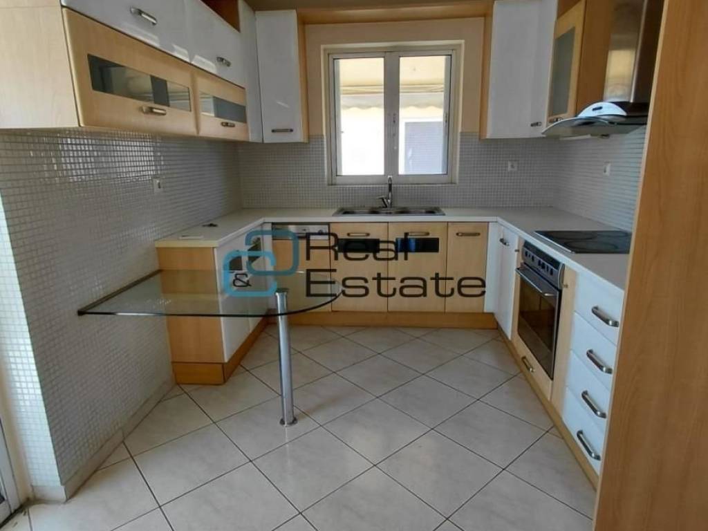 Alimos, Kalamaki, Floor Apartment For Rent, 120 sq.m., Property Status: Very Good, Floor: 4th, 3 Bedrooms 1 Bathroom(s), 1 WC, Heating: Autonomous - Natural Gas, Building Year: 2005, Energy Certificate: E, 1 parking(s), Floor type: Wooden floors + Tiles, Type of door frames: Aluminum, Features: Elevator, Security door, CCTV, Storage room, Double Glazed Windows, Window Screens, Balcony Cover, Balconies, Airy, Roadside, Bright, On Corner, Solar water system, Price: 1.600€. CnC Real Estate, 6937079170