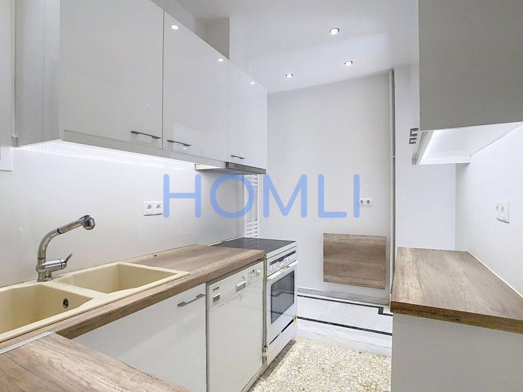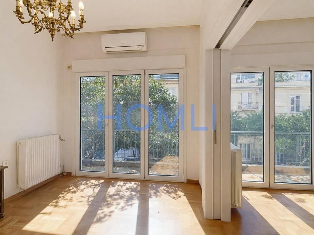 Fully renovated apartment, just 4' from the Megaro Mousikis Metro Station. Renovated in 2020, it is in excellent condition. It features aluminum window frames with screens. It is located in a prime neighborhood in Athens, 15' from Dexameni Square in Kolonaki. Also suitable for professional use. HOMLI, property code 23722, contact us by phone at 2104446498.