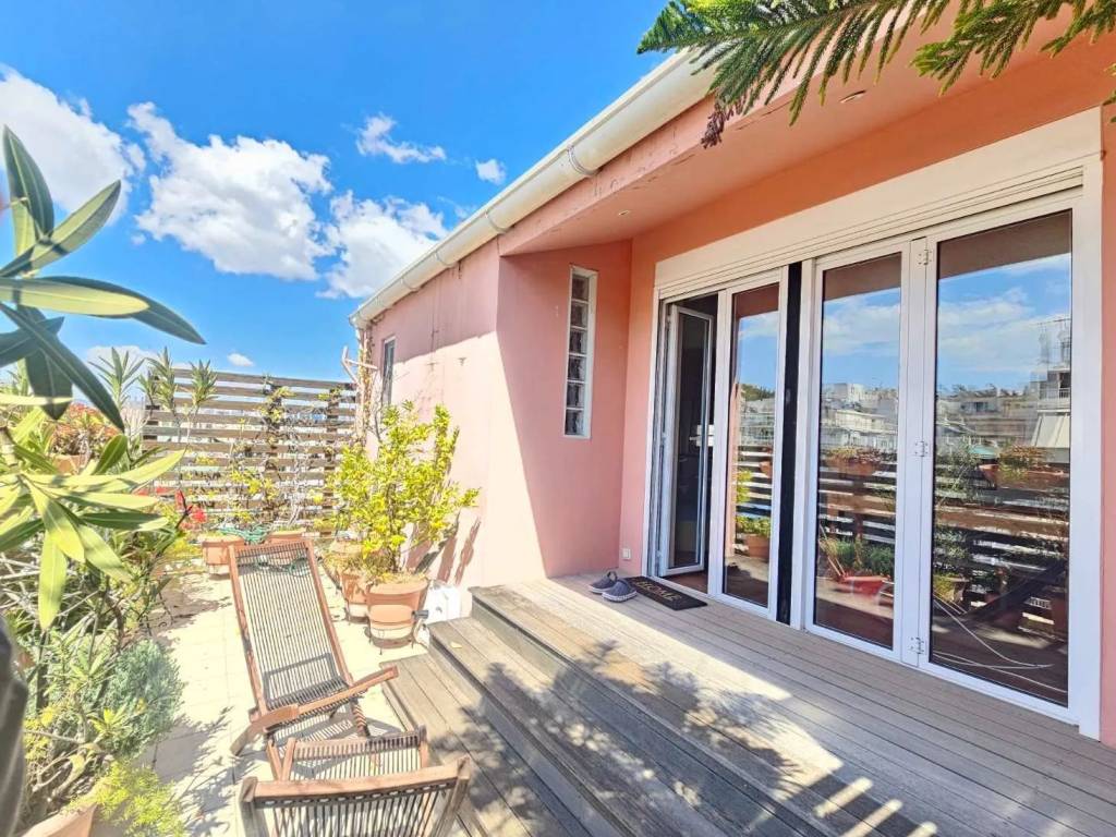 In one of the quietest and most refined neighborhoods of Exarchia, this unique three-level maisonette is offered for sale. With a total surface of 180 sq.m., fully renovated in 2010, it combines elegance, privacy, and abundant natural light with an unparalleled view of Lycabettus Hill. The 3rd floor (70 sq.m.) serves as the main reception area. It features a bright living room with a fireplace, an open-plan dining area, and a high-end open kitchen, with access to a spacious veranda offering views and natural light throughout the day. There is also a guest WC. The 4th floor (70 sq.m.) is the private living area. It includes a comfortable sitting area and an impressive bedroom created by merging two rooms, with the possibility of reconfiguration. There is a large bathroom with a spacious bathtub, as well as a storage/laundry room with built-in wardrobes of high aesthetic quality. The 5th floor (40 sq.m.) is a self-contained studio suite. This open-plan space features an internal wooden roof, a bedroom, a bathroom, and a kitchenette. It can function fully independently, with its own front-facing veranda offering abundant light, as well as a small rear balcony. Ideal for hosting guests or as a premium studio/office. Additional Features: Closed underground parking space, a rare privilege in Exarchia Two spacious verandas with views Private elevator access directly to the maisonette Internal emergency exit with a security door Premium finishes, fireplace, and electric awnings where needed Autonomous heating with natural gas and 4 air conditioning units A residence that combines refined aesthetics with functionality, in a prime location, in close proximity to Lycabettus Hill, Strefi Hill, and Pedion tou Areos, offering immediate access to green spaces and recreation. The neighborhood blends picturesque alleys, neoclassical buildings, cafés, restaurants, and a vibrant artistic atmosphere, while excellent access to metro and bus lines makes it ideal for high-standard living or investment.