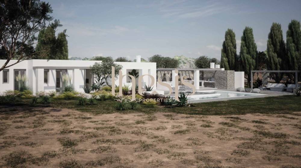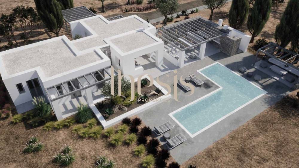 Tucked away in the sought-after coastal enclave of Santa Maria, this under-construction villa unfolds within an expansive 8,000 sqm plot, just a gentle two-minute walk from the shoreline, where the rhythm of the Aegean quietly shapes everyday life.