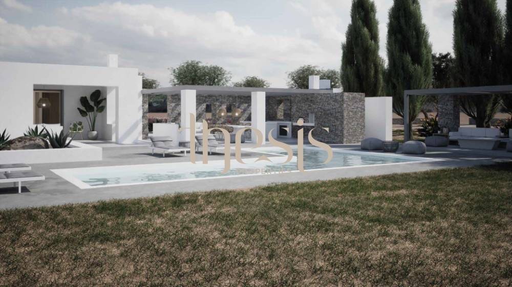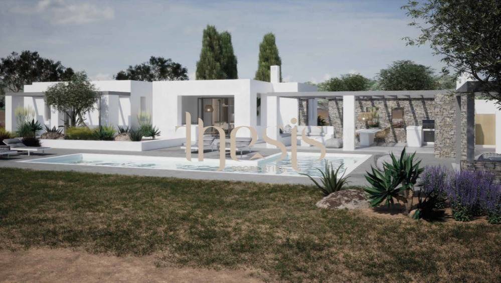 Designed as a private summer retreat, the residence spans 150 sqm and is already 80% completed, with its final stage approaching. The architecture follows a refined Cycladic language — clean volumes, soft transitions, and a natural dialogue between interior and exterior spaces — elevated through carefully selected materials that privilege longevity and understated elegance.