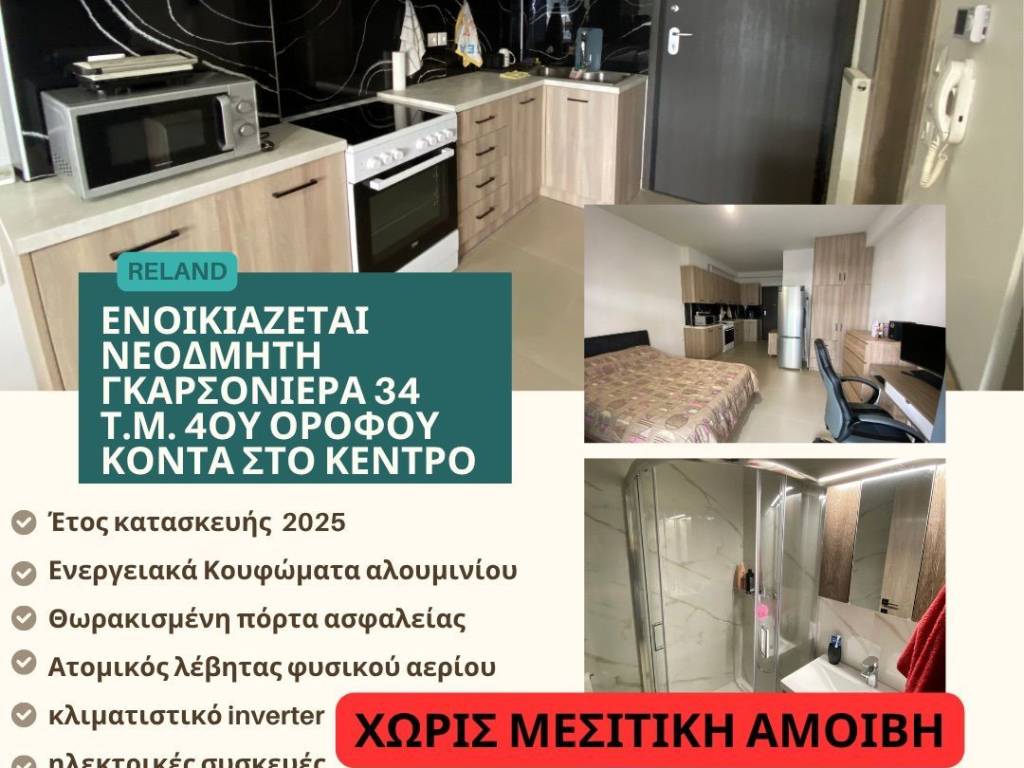 **FOR RENT** **NO AGENCY FEE** A 34 sq.m. studio apartment on the 4th floor is available for rent in the Analipsi area. It consists of a single space with living room – kitchen – bedroom, a bathroom, and a front-facing balcony. **PROPERTY FEATURES:** • Year of construction: 2025 • Reinforced security door • Energy-efficient aluminum window frames • Individual natural gas boiler • Electrical appliances included • Desk, chest of drawers, and bookcase • Insect screens **IMMEDIATELY AVAILABLE!** Located in a very good area, just 5 minutes from the commercial market of Volos. An ideal choice for students and working professionals! For more information or to schedule an appointment, contact: +30 6970080280