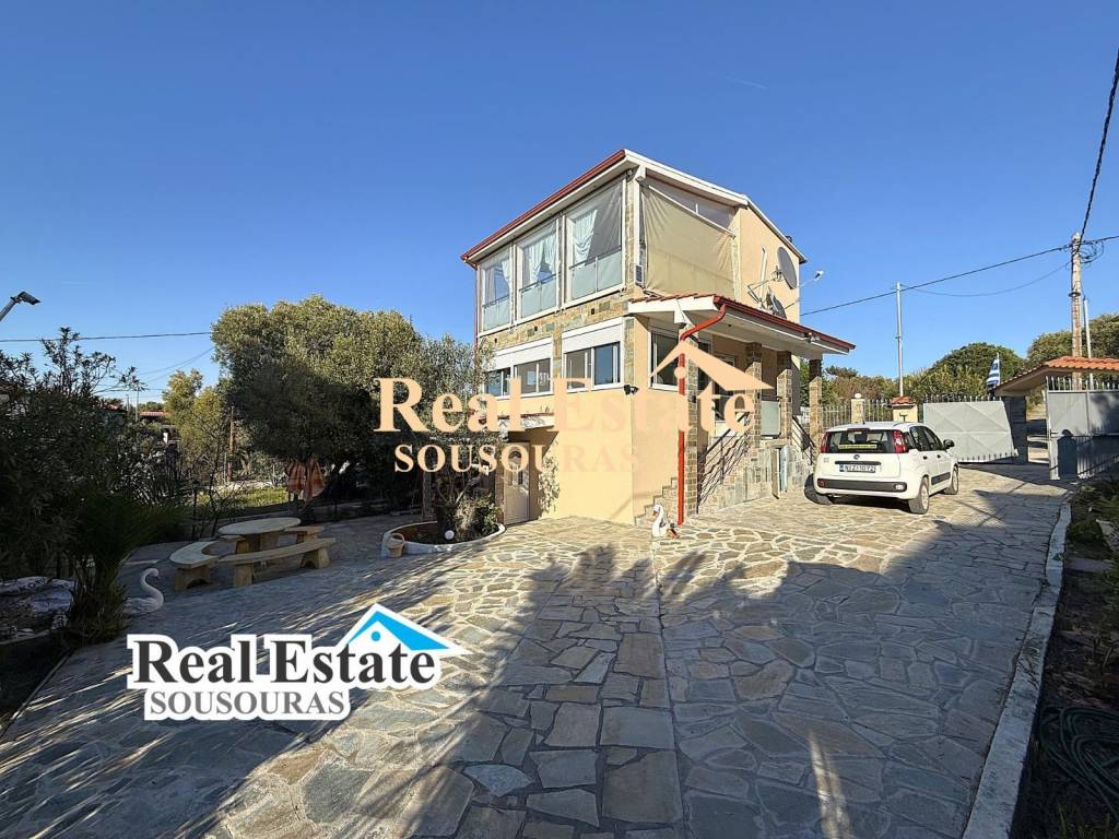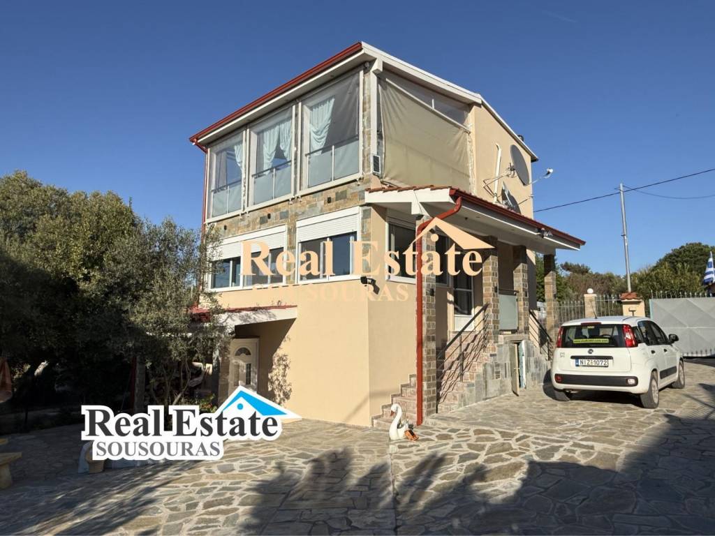 Wonderful detached house with private garden in a quiet area 240 m from a sandy beach It is developed on three levels and consists of three bedrooms, two bathrooms, two kitchens, dining room, living room and a wonderful terrace with incredible views It has security doors, soundproof windows, fully furnished, central heating, air conditioning, solar water heater, private garden, BBQ and exclusive parking space for two vehicles It is located 240m from the beach, 1000m from the village market with café, super markets, shops and taverns, 70 km from Thessaloniki airport and 10 km from the hospital. For more information JUSK CALL +30 6977246200 Sousouras Vasilis Halkidiki Realtor