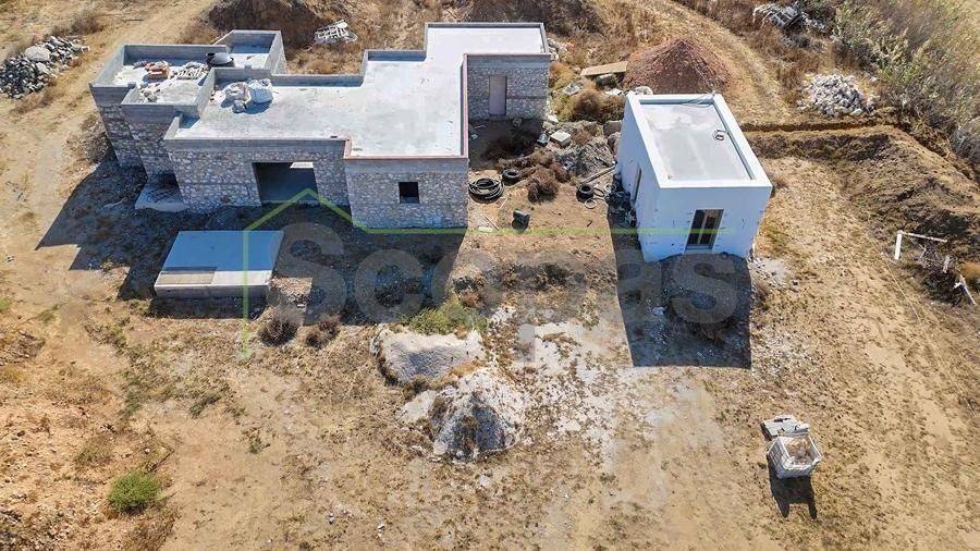 Unfinished house for sale by SCOPAS REAL ESTATE & CONSTRUCTION. House with a total area of ​​216m2 on a plot of 5365m2, in western Paros, in Pounda. 2 buildings, the 1st is the primary residence and the 2nd is the guest house. (the guesthouse is ready/habitable) In total, the property includes 4 bedrooms, 3 bathrooms, a kitchen, and a living room. It has also a well with license. There is a remaining building area of ​​80m2. Suitable for permanent or holiday home. It is also an ideal choice for investment. Western orientation with a unique view of the island of Antiparos and the sunset. Accessible by dirt road, 300m from the sea (in a straight line) 7km from the airport, 8.5km from the port. -The information and characteristics of the properties have been entered based on the information and data provided by the principal. -The point on the map does not correspond to the real address of the property. -When indicating the property, a identity card or VAT number is necessary, according to Law N.4072/2012 - Official Gazette 86/A/11-4-2012.