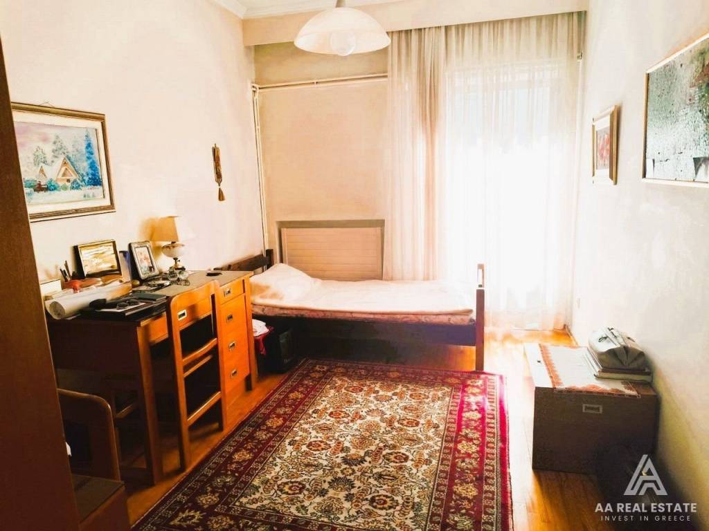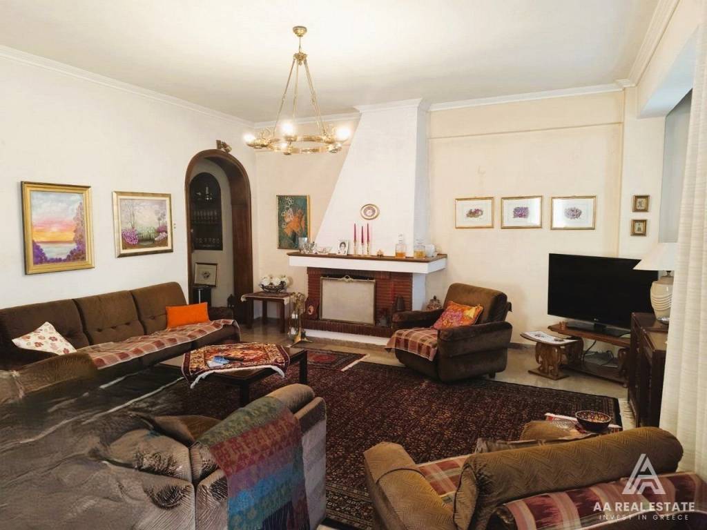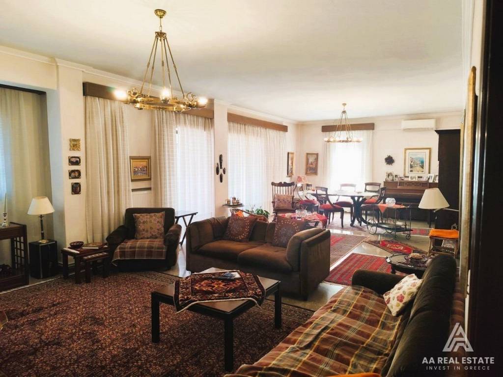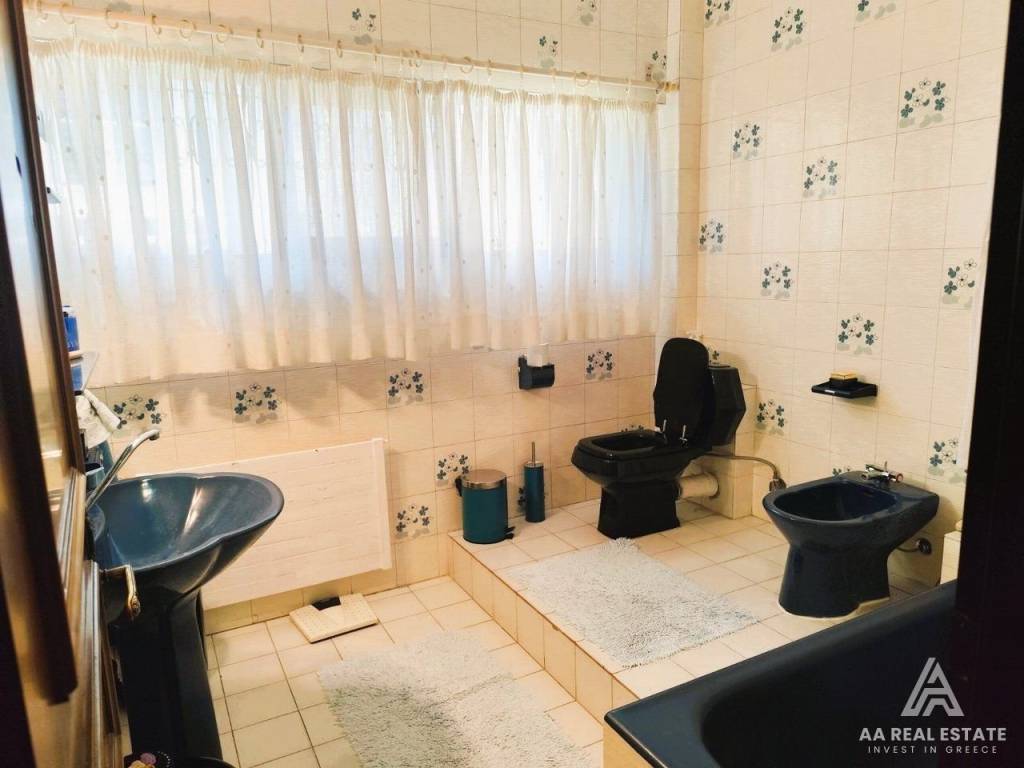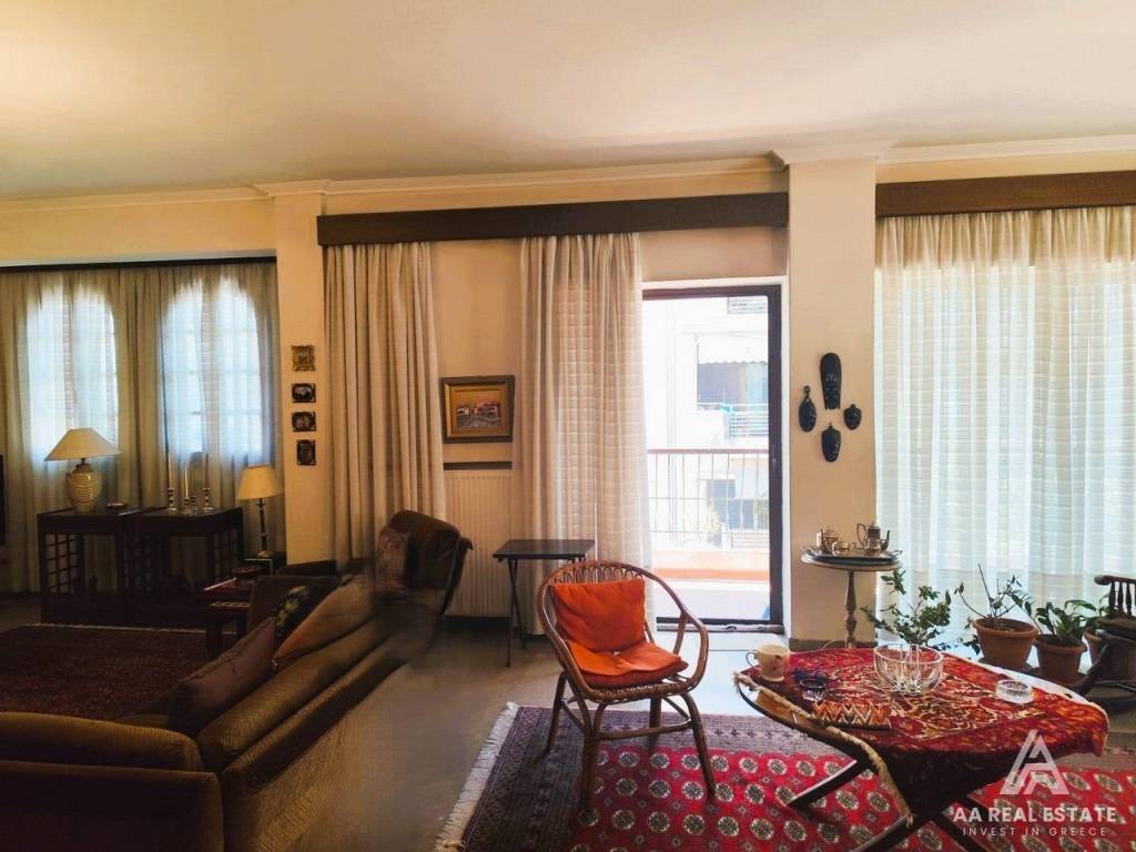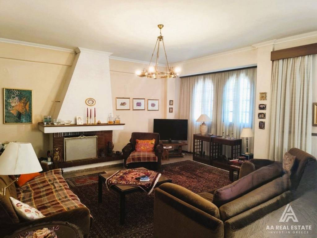 KALAMARIA Vyzantio - FOR SALE mansion, exceptionally bright, corner, airy 3rd floor apartment with a total area of ​​174 sq.m. net 145 sq.m. The building is luxuriously constructed in 1982. It consists of a huge living room with fireplace and space for a bar, three bedrooms, a separate comfortable kitchen, two bathrooms, comfortable balconies around all three sides. Its heating is individual with natural gas. It has a security door, aluminum frames, awnings, floors made of excellent marble and wood and an elevator. All bedrooms have wardrobes while the balconies have a view of an unobstructed opening. This is a bright and tasteful apartment. It is located in a quiet neighborhood near the future metro stop, with easy access, next to bus stops, shops, parks and schools. It is an excellent choice for home ownership and investment. number of floors in the building 3, terace, type of glass single, energy class Ε, investment, zone residential, view, frames aluminium, floor apartment, luxury home, security door, orientation eastmeridian, facade, awning, flooring type marble-wood, bright