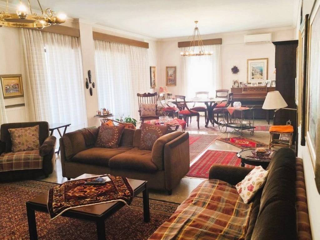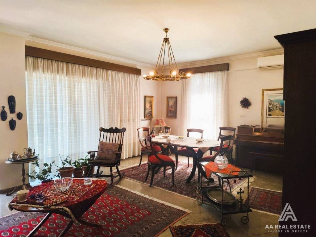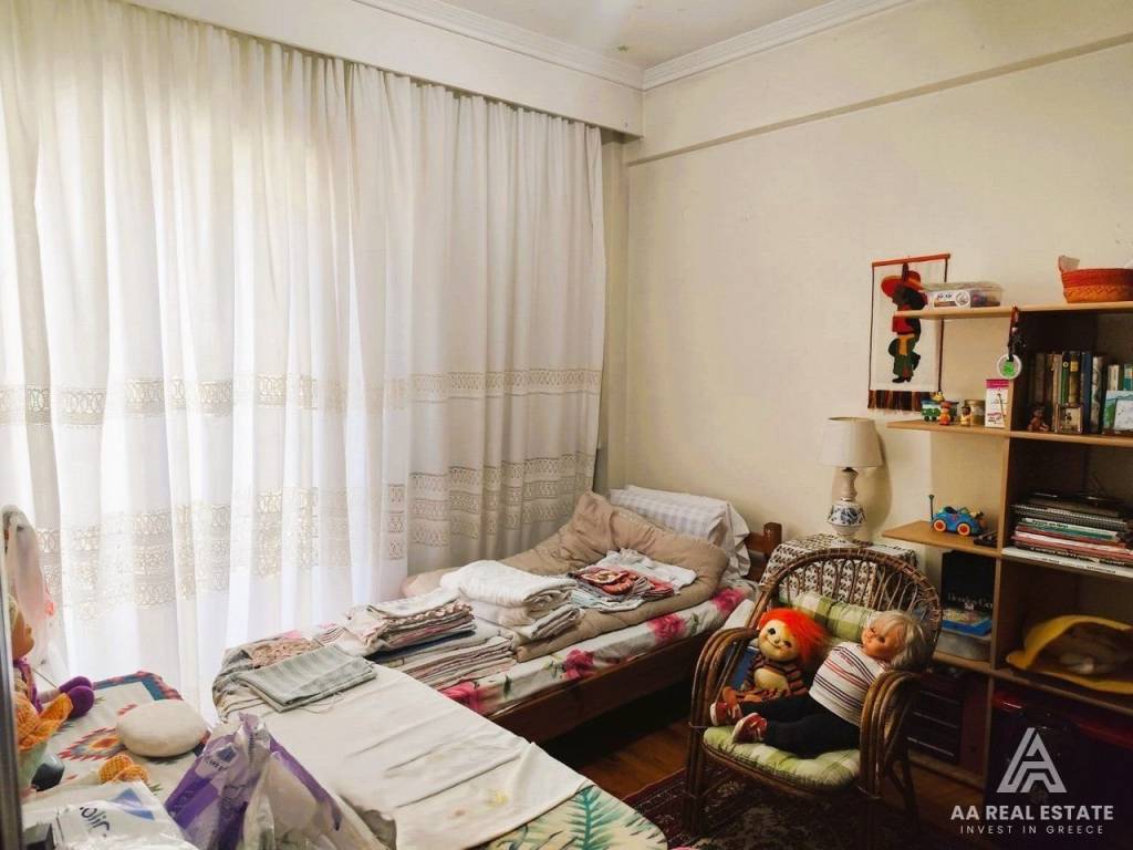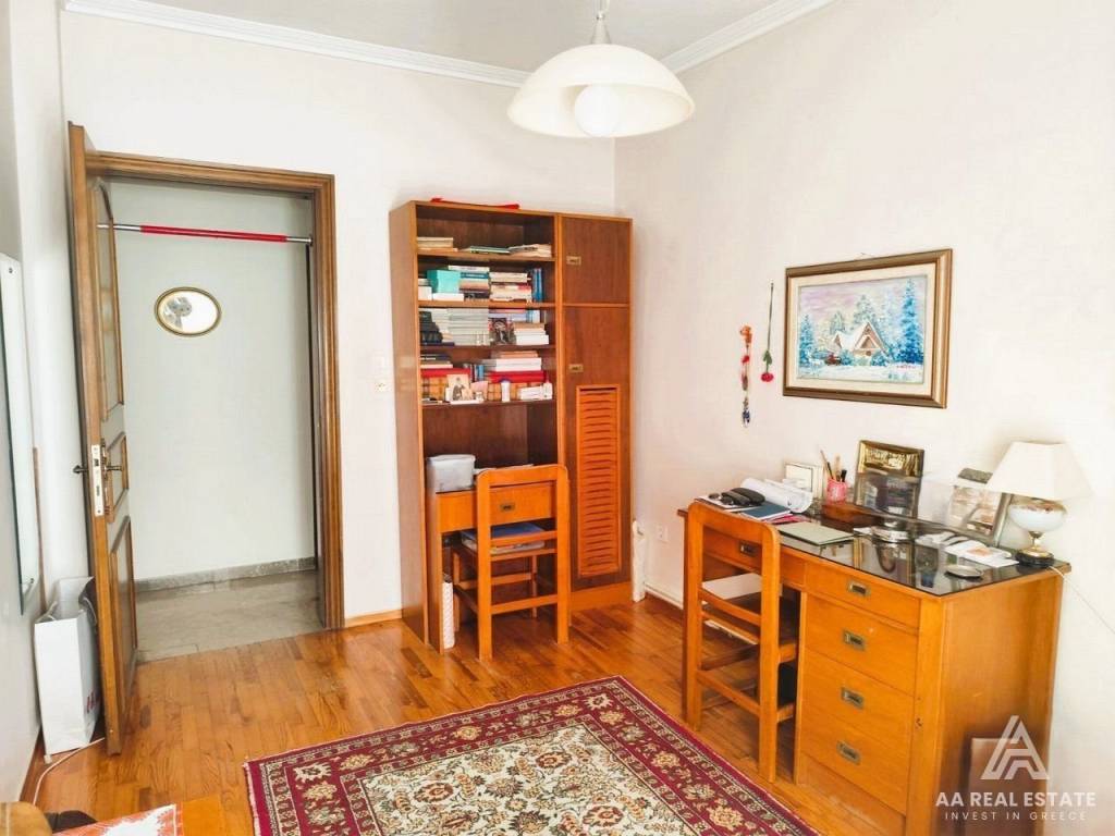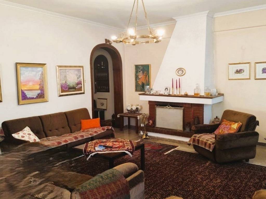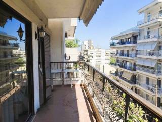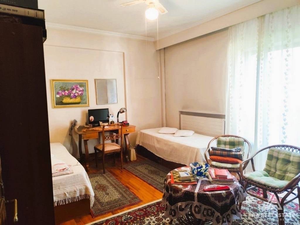 KALAMARIA Vyzantio - FOR SALE mansion, exceptionally bright, corner, airy 3rd floor apartment with a total area of ​​174 sq.m. net 145 sq.m. The building is luxuriously constructed in 1982. It consists of a huge living room with fireplace and space for a bar, three bedrooms, a separate comfortable kitchen, two bathrooms, comfortable balconies around all three sides. Its heating is individual with natural gas. It has a security door, aluminum frames, awnings, floors made of excellent marble and wood and an elevator. All bedrooms have wardrobes while the balconies have a view of an unobstructed opening. This is a bright and tasteful apartment. It is located in a quiet neighborhood near the future metro stop, with easy access, next to bus stops, shops, parks and schools. It is an excellent choice for home ownership and investment. number of floors in the building 3, terace, type of glass single, energy class Ε, investment, zone residential, view, frames aluminium, floor apartment, luxury home, security door, orientation eastmeridian, facade, awning, flooring type marble-wood, bright