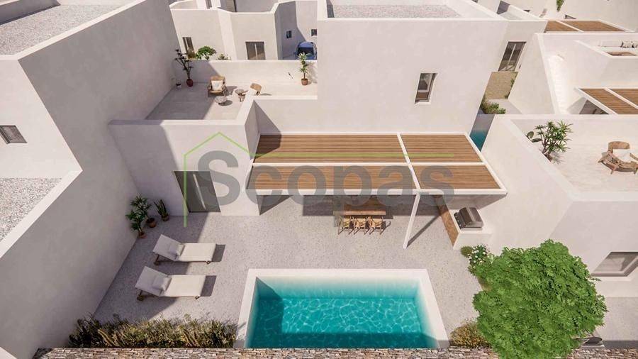 House in a complex for sale by SCOPAS REAL ESTATE & CONSTRUCTION. In the charming southern region of Paros, within the authentic Cycladic landscape of Alyki, this elegant 133m² two-storey residence is part of a beautifully designed complex of eight homes. Combining tasteful architecture, functionality and harmony with the natural surroundings, the property offers an ideal setting for relaxation and high-quality living. The residence features 3 bedrooms, 2 bathrooms, 1 WC, a comfortable living room, and a kitchen, fully meeting the needs of modern living or a high-standard holiday home. Outdoors, the property includes a private swimming pool, landscaped courtyard, and private parking space, providing comfort and complete privacy. With a south-facing orientation and stunning sea views, the home enjoys abundant natural light and captivating views of the Aegean horizon. Perfect as a permanent residence or holiday retreat, the property is also an excellent option for touristic exploitation, thanks to its privileged location and its features that appeal strongly to visitors. Distances: • 350 m from Piso Alyki Beach • 5.3 km from Paros Airport • 13.3 km from the port Access is via a short dirt road for the final meters. The wider area – Alyki, Paros Alyki is one of Paros’ most beloved seaside villages, known for its peaceful sandy beaches, traditional fish tavernas, picturesque alleys, and warm local character. Its charming harbor, natural beauty and easy access to essential amenities make it an ideal location for those seeking a high quality of life by the sea. Additionally, its proximity to the island’s airport offers great convenience for both residents and visitors. The information and characteristics of the properties have been entered based on the details and data provided by the principal. - The point marked on the map does not correspond to the actual address of the property. - When identifying the property, an identity card or VAT number is required under Law N.4072/2012 - Official Gazette 86/A/11-4-2012.