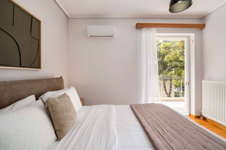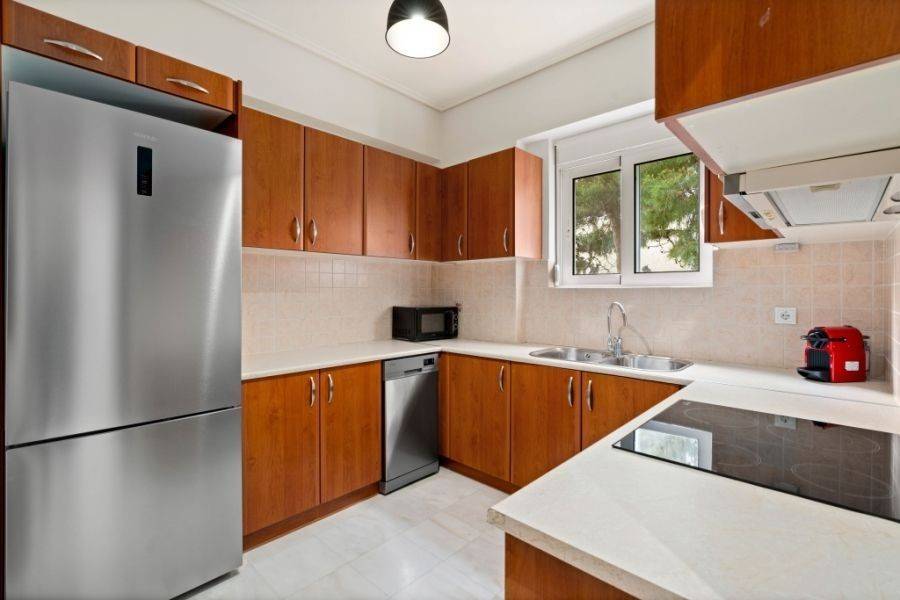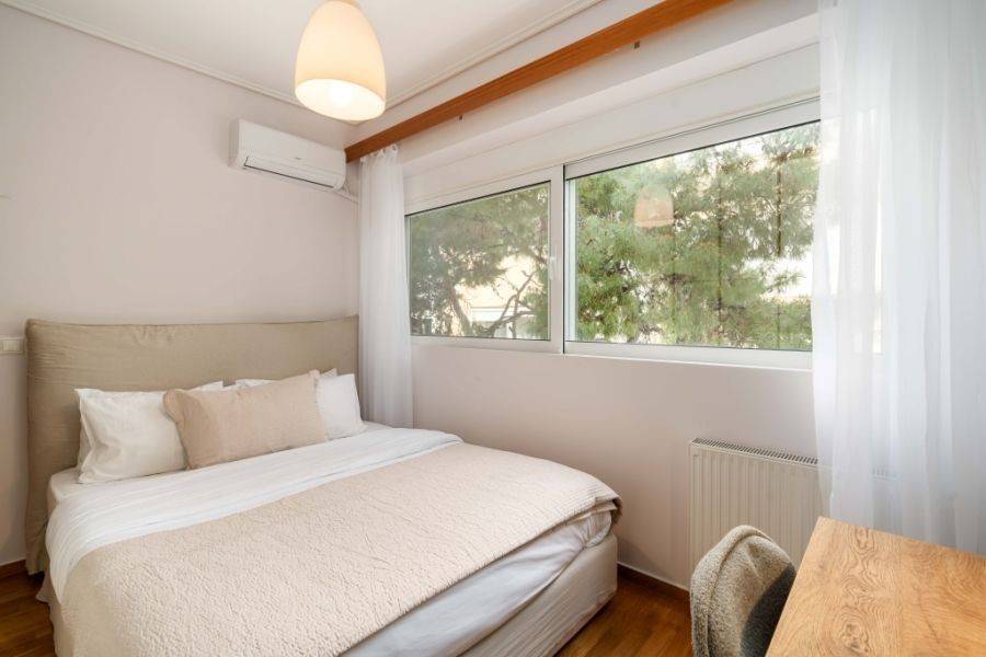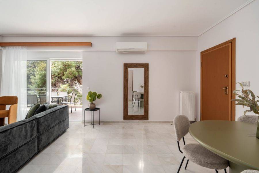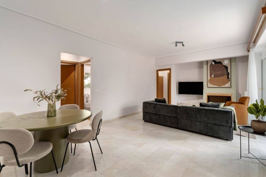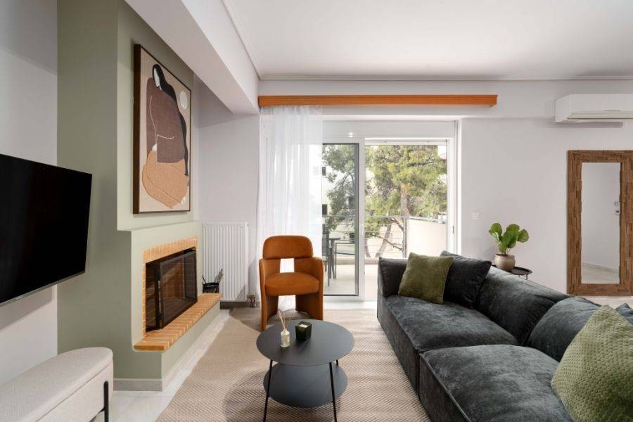 Agia Paraskevi, College, Apartment For Rent, 96 sq.m., Property Status: Amazing, Floor: 2nd, 1 Level(s), 3 Bedrooms 1 Kitchen(s), 1 Bathroom(s), 1 WC, Heating: Autonomous - Natural Gas, View: Good, Building Year: 2006, Energy Certificate: C, 1 parking(s), Floor type: Wooden floors + Tiles, Type of doors: Aluminum, Features: Elevator, Security door, Security alarm, CCTV, Fireplace, Night stream, Cable TV, Internet Line, Electric Appliances, Double Glazed Windows, Window Screens, Balcony Cover, Balconies, Furnished, Luxury, Airy, Roadside, Bright, On Corner, AirConditioning, Back yard (Garden), Price: 1.750€. Yestayhomes, Tel: 6986749007
