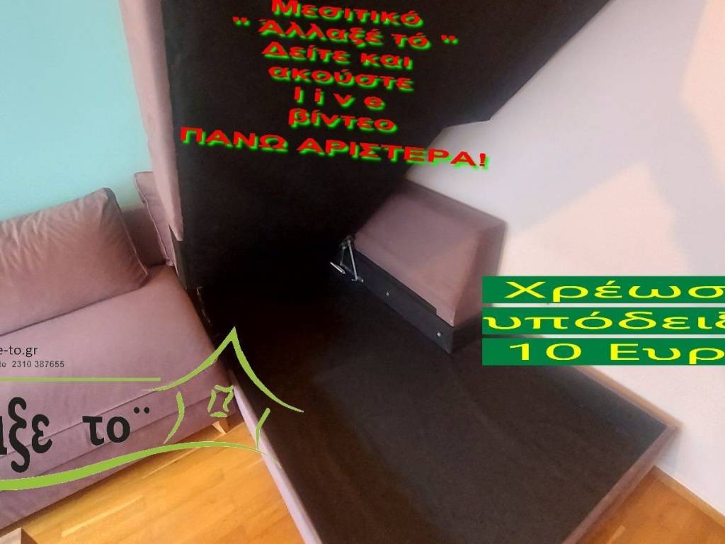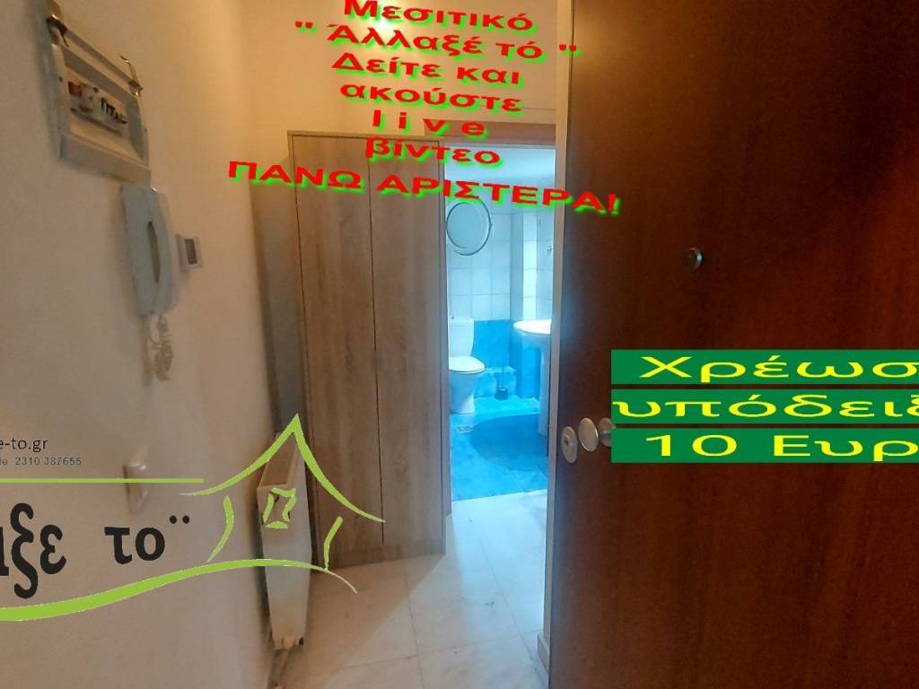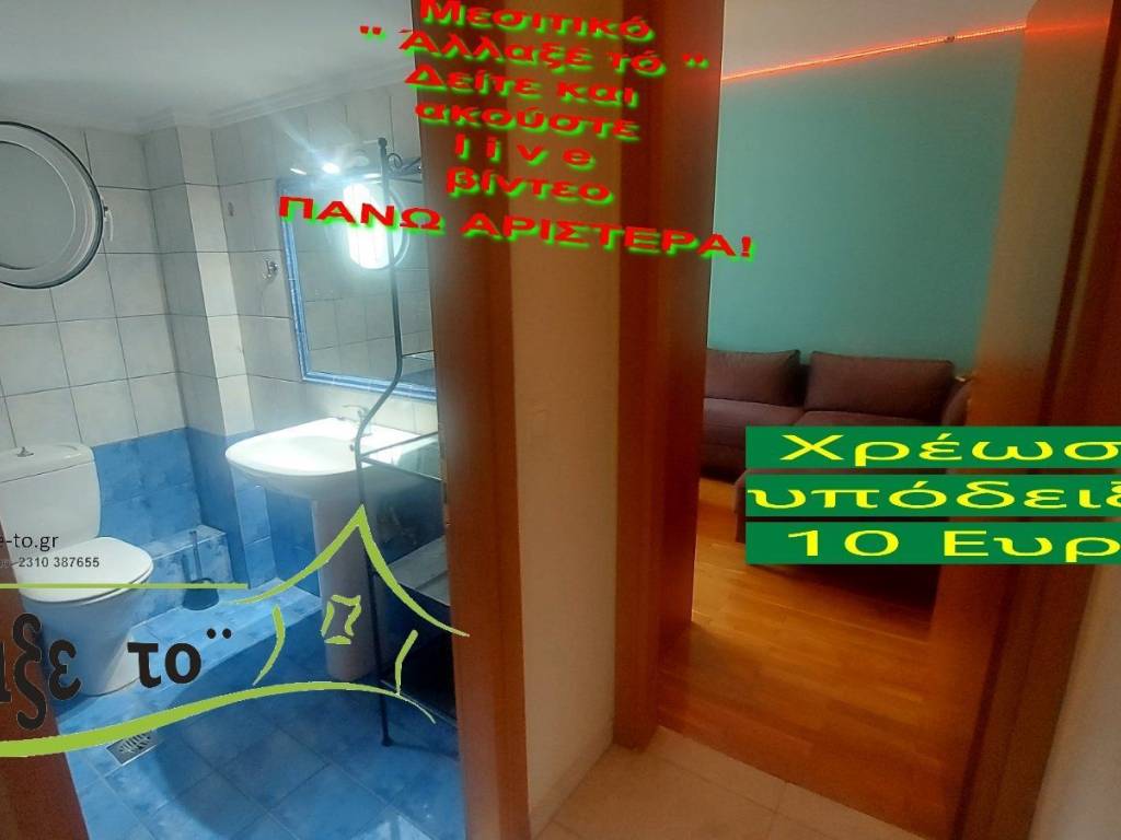 Check the video : https://youtu.be/uZM2N0fC97w The Presentation - suggestion of the property costs 10 €.(Including Taxes) law Ν.2859/2000 » Ar 9. If you liked the photos and the description, do not forget to watch and listen to the video! Watch and listen to the video as many times as you like here: https://youtu.be/uZM2N0fC97w or right and bottom to the end of the page. So you know from the beginning if it's worth to seeing it.. It's like you are within the home. SERVICES PROVIDED: The Presentation - suggestion of the property costs 10 €.(Including Taxes) Upon completion of the transaction, the above amount is deducted from the Brokerage Fee. The property is indicated by the demonstration of the police ID. The Presentation of the property at our office is free of charge. The Real Estate Change Office was created by Rania Pappa and Vassilis Kontelis, because when they were looking for a home, they were badly affected by ... realtors. Brokering fees is not the only thing that we care about. We love this job very much and we identify with you as if we were looking for a home for us ... Like Like on our Facebook page and see all opportunities here: https: //www.facebook.com/allaxeto.gr ΥοuTube : https://www.youtube.com/user/MsPaco75 Real Estate Office "Change it" Mobile phone for appointment: Vasilis 00306932425542 {cosmote,viper,what's app} Contact Person: Mr. Vasilis Kontelis Tel.: 00302310387655 Address: Riga Ferraiou 175 Sykies P.C. 56626 Thessaloniki Email: b-kontel@otenet.gr www.allaxe-to.gr