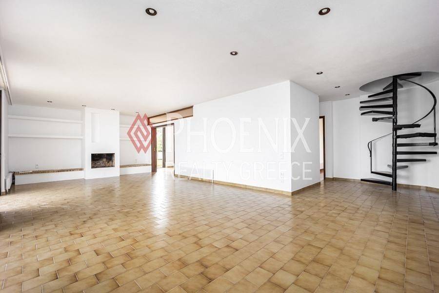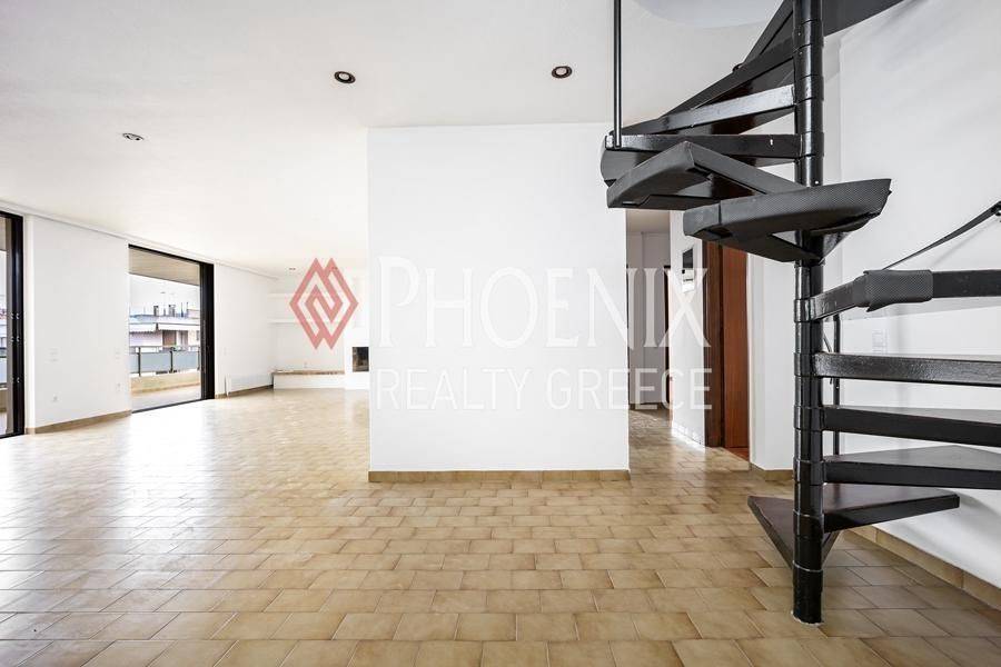 AGIA PARASKEVI (Northern Suburbs of Athens) – Impressive 185 sq.m. apartment, in excellent condition, fully renovated in 2025, energy class C. The property is developed on two levels: 4th floor (160 sq.m.) and a 5th-floor rooftop studio (25 sq.m.), connected by an internal staircase, offering both functionality and a sense of independence between spaces. It is dual-aspect, bright, corner, and front-facing, featuring large wrap-around verandas that provide open views and a unique sense of space. Located in a particularly beautiful and quiet area, close to a square, it is ideal for high-standard living. The main residence includes two spacious living rooms with a fireplace, a separate kitchen, 3 bedrooms, one bathroom, and one WC. The rooftop level functions as an independent space, with its own WC and a small kitchenette—perfect for guests, a home office, or a private studio—offering access to a large terrace with stunning views. Additional features: Autonomous heating with natural gas, solar water heater, aluminum window frames with double glazing and insect screens, security door, video intercom, and one open parking space. A stylish and spacious property that combines comfort, privacy, and high-quality living. Price: €2,000 (Ref. Code: E1376) Chara Spyrou Tel.: +30 697 4821500 PHOENIX REALTY GREECE