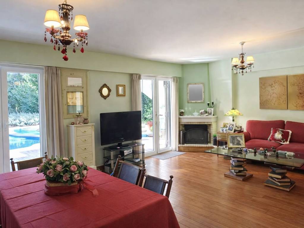 Luxurious, fully independent maisonette with private pool & elevator – surrounded by greenery In an exclusive complex of just three residences, a unique, fully independent maisonette is offered for sale, functioning as a detached house and combining privacy, luxury, and complete harmony with nature. The residence spans a total of 580 sq.m. on a 650 sq.m. plot and has been designed with exceptional care and aesthetics, radiating warmth, comfort, and elegance throughout. It features a private entrance, beautifully landscaped garden, private swimming pool, and two enclosed parking spaces. Main level (elevated ground floor): An impressive double-height entrance area creates a sense of grandeur from the very first moment. A few steps lead to the main living room with a striking fireplace. This level also includes an atrium overlooking the pool, a spacious dining area, a functional kitchen with a daily dining space, front and rear balconies, and a guest WC. Upper level & attic: An internal balcony enhances the feeling of openness and leads to the bedrooms. The master bedroom features an en-suite bathroom and walk-in wardrobe, while there is an additional spacious bedroom with its own bathroom. The original layout included three bedrooms on this floor; two have been combined but can easily be separated again. The attic hosts an additional bedroom or office with its own bathroom, ideal for privacy and tranquility. Lower level (ground floor): An ideal space for relaxation and entertaining, featuring a large, bright living area with fireplace and direct access to the garden and pool. It also includes a small kitchen, a staff room or guest room with natural light, a bathroom, and a laundry area. The residence is equipped with an internal elevator serving all levels, while the “basement” is למעשה at ground level, offering ample natural light and comfort. An exceptional choice for families seeking high-quality living, luxury, and a close connection to nature.