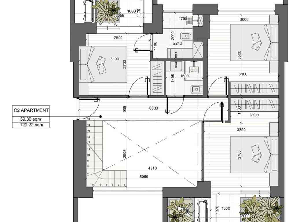 129 m²