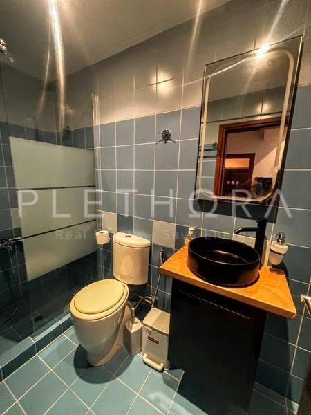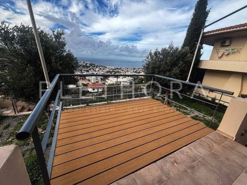 Saronida - Apartment 100sqm plot 600sqm, unfurnished, bedrooms 2, levels 1, ground floor (2 bedrooms, living room, kitchen, 2 bathrooms), excellent condition, year built 2010, renovation year 2024, energy class B, living room, kitchen, 2 bathrooms, heating type: autonomous (oil), air condition, luminous, sea view, frontage, painted, storage space, balconies, tents, garden, aluminum frames, double glazed windows, door screen, ceramic tiles floors, without common charges, night electricity discount rate, secure door, luxurious, residential zone, southern orientation, access from asphalt, close to metro/train (up to 1500m), close to sea (up to 1500m).