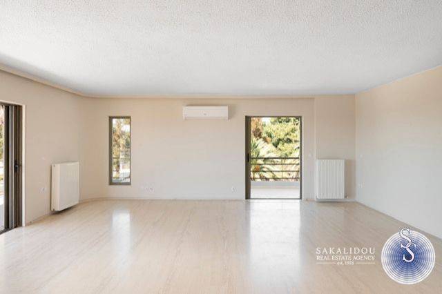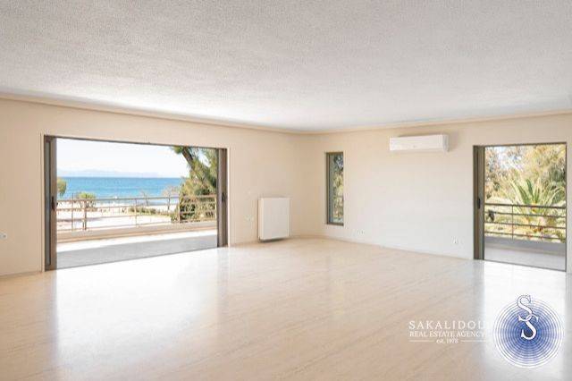 GLYFADA, BEACH, excellent 165 sq.m. apartment, 2nd floor, with a unique and unobstructed view of the sea, very bright, pleasant and airy, fully renovated in 2026 and consists of a comfortable and bright reception area with fireplace, large veranda around, 3 bedrooms (of which 1 master), 2 bathrooms, 1 WC, separate kitchen, maid's room. In addition, it has autonomous heating with natural gas, air conditioning, fireplace, aluminum frames with double glazing, elevator, large and very beautiful garden, in a very privileged and unique location, next to the beach, in the Square, to public transport.