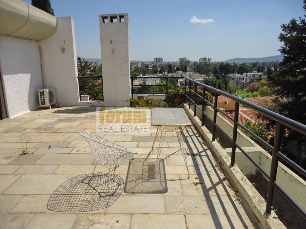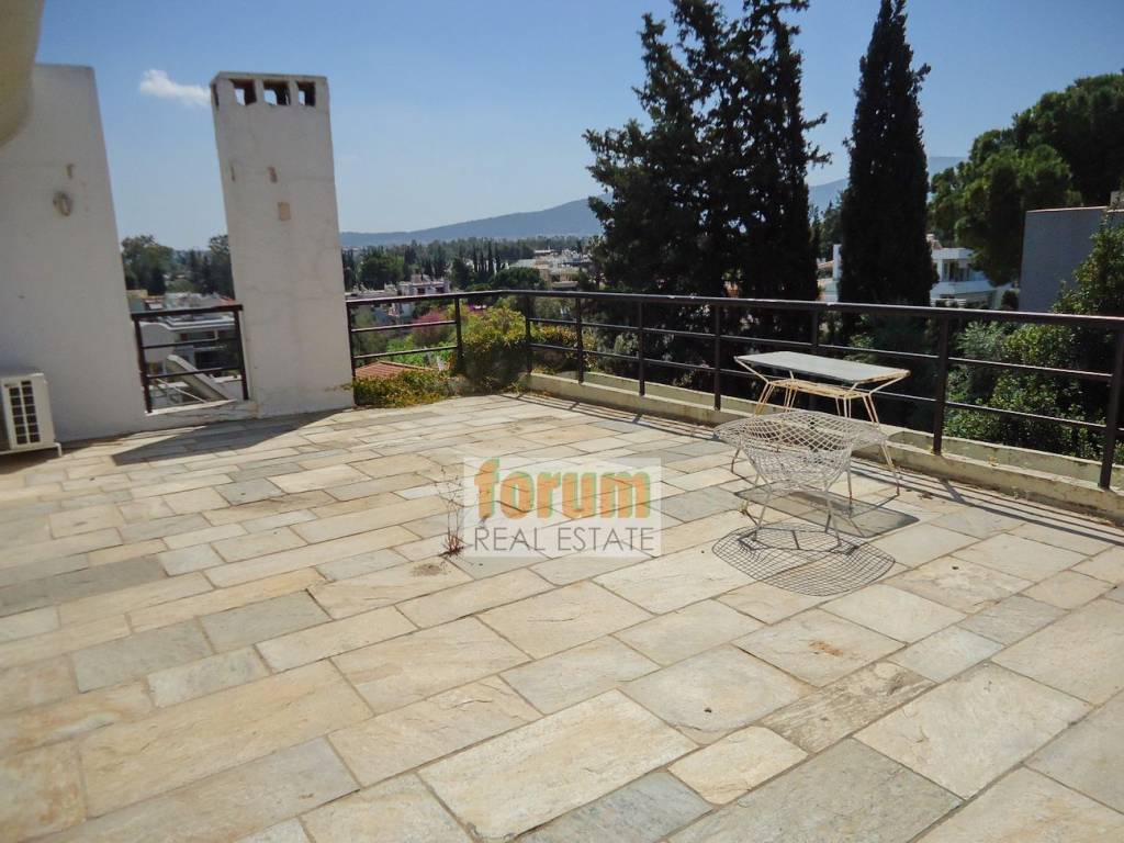 Η μεζονέτα αναπτύσσεται σε 4 επίπεδα. Στο υπόγειο υπάρχει γραφείο με τζάκι , βοηθητικό δωμάτιο , αποθήκη και W.C. Στο Ισόγειο υπάρχει σαλόνι με τζάκι και έξοδο σε βεράντα με αποκλειστικό κήπο και κουζίνα . Στόν Α' Οροφο υπάρχουν 3 υπνοδωμάτια (το ένα master) και 2 λουτρά και στό δώμα υπάρχει ένα υπνοδωμάτιο με λουτρό και τεράστια βεράντα. Η θέρμανση είναι ατομική με λέβητα πετρελαίου , τα κουφώματα είναι αλουμινίου , υπάρχει ηλιακός , τέντες , πόρτα ασφαλείας και μεγάλες βεράντες. Τιμή 2400 €/μήνα