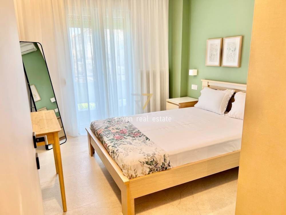 Thessaloniki, Papafi: For rent renovated (2024) apartment of 79 sq.m. facade on the 3rd floor with elevator and individual natural gas heating. It consists of 2 bedrooms, separate kitchen, living room and bathroom. It is fully furnished, equipped, with electrical appliances, built in 1975, painted and has synthetic frames with double glazing, armored door, 2 air conditioners, tiled floors, awnings. It is located in a very central location, next to a market and transportation, ideal for students and workers. Price 770€ | Property Code: #38581