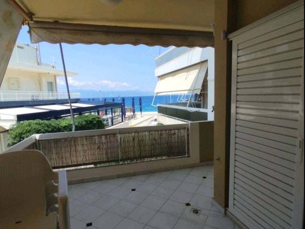 Apartment 60sqm, 1st floor renovated. It consists of a spacious living room, kitchen, a comfortable bedroom, bathroom and a large corner balcony with sea view. It has aluminum windows, screens, awnings, it is renovated and has a security door. Only 50 meters from the beach of Loutraki