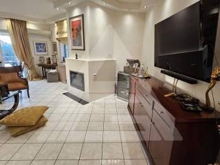 Voula - Apartment 132sqm bedrooms 3, levels 1, 1st, renovated, year built 1986, renovation year 2023, energy class A, living room, hall, kitchen, bathroom, wc, heating type: autonomous (oil), air condition, parking ground floor, quiet, dual aspect apartment, luminous, corner, frontage, painted, drop ceiling, electric roller shutters, solar heater, external thermal insulation, fireplace, balconies, large balconies, balcony 80sqm, tents, elevator, loft storage, built in appliances, aluminum frames, double glazed windows, door screen, wood & tile floors, separate kitchen, three phase electricity, secure door, alarm, surveillance cameras, video doorbell, luxurious, pets allowed, residential zone, east-southern orientation, access from asphalt.