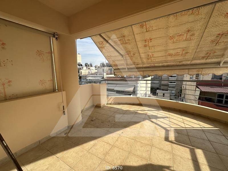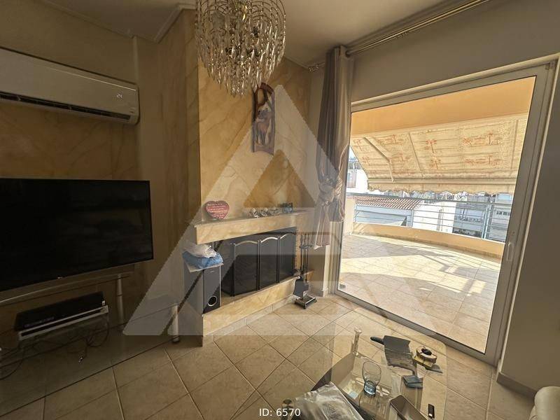 Nea Ionia (Attica - Northern Suburbs) - Floor Apartment 95sqm plot 200sqm, bedrooms 3, levels 1, 6th, penthouse, excellent condition, year built 2006, energy class B+, living room, kitchen, bathroom, wc, heating type: autonomous (oil), air condition, parking covered, dual aspect apartment, luminous, mountain view, frontage, storage space 3sqm, solar heater, fireplace, large balconies, balcony 26sqm, tents, elevator, aluminum frames, ceramic tiles floors, three phase electricity, night electricity discount rate, secure door, alarm, playroom, residential zone, close to bus stop (up to 200m), close to school (up to 1000m).
