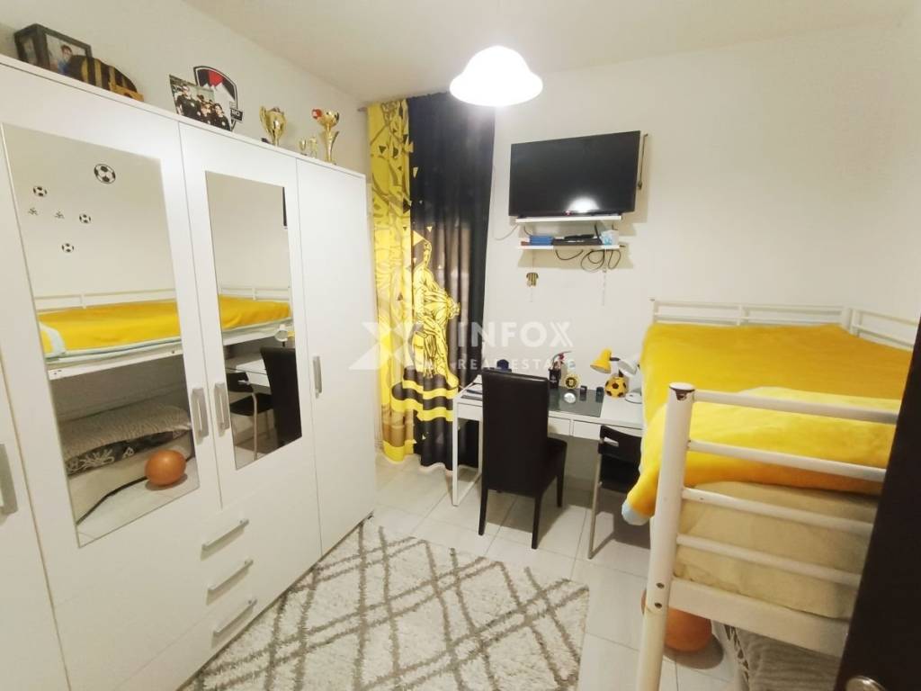 Property Code: 1054-15511 - Apartment FOR SALE in Kalamaria Center for € 237.000 . This 97.00 sq. m. Apartment is on the 1st raised floor and features 3 Bedrooms, an open-plan kitchen/living room, bathroom and a WC. The property also boasts Heating system: Individual - Natural gas, tiled floor, unobstructed view, Window frames: Synthetic, Armourplated door, elevator, parking, fireplace, alarm system, awnings, solar-powered water heater, boiler. The building was constructed in 1987 and renovated in 2019 . Building Energy Rating: A+ Distance from sea 800 meters, Distance from nearest airport: 12000 meters, Nearest metro station at 40 meters.