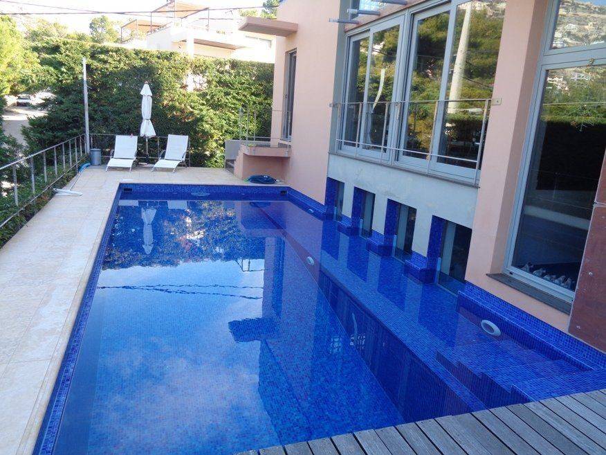 GREECE, ATHENS, Saronida, Villa 680 m², for rent long term (only) / 1Year +, or sale, Unfurnished (possibility for rent with furnished), 4 levels, construction year 2005, with architectural design - high quality materials and extra equipment, designed to meet the modern requirements / housing needs. It consists of 4 bedrooms (master), 4 bathrooms (jacuzzi), 1 wc, 3 living rooms, 3 kitchens, dressing room, central heating, boiler, fireplace, security door, aluminum windows with double bulletproof windows, central air conditioning system (with 8 independent zones), excellent sound-insulation of the building, luxury granite floors and oak floors in the bedrooms, central alarm installation networks - HiFi - TV - satellite TV and security system (closed circuit TV), electrical automation, elevator to all levels (up to the underground garage), large warehouse, garden with lawn - ornamental plants and trees (with automatic irrigation), private drilling, roof garden, lightning rod, play room with home cinema, laundry room, room for drying – ironer, outdoor pool 40 sq.m. with cover (and can be heated), BBQ, oven, underground garage 5-6 positions / with garage door heavy duty, on a plot of 910 square meters, very bright house, environment with lush vegetation, overlooking the mountains and the sea (from the roof garden), 27 minutes from Athens International Airport Eleftherios Venizelos. Please, for more information and photos, contact our agency. The location on the map is not accurate. (A6481) ATHENS PROPERTY Real Estate, +30 698 564 1484 (WhatsApp). For more properties visit our website www.AthensProperty.gr Details: https://athensproperty.gr/en/propertyDetails/19773660 Note: in the Saronida region, the SARONIDA OLYMPOS GOLF project is to be implemented with the creation of a complex tourist accommodation, with a 550,000 sq.m. golf course, heliport, tourist village, tourist port, etc. which will positively affect the prices of real estate in the region. Playroom, youtube, Address, Double glazing, Condition, Closet, Luxury Residence, Security door, Orientation, Access,
