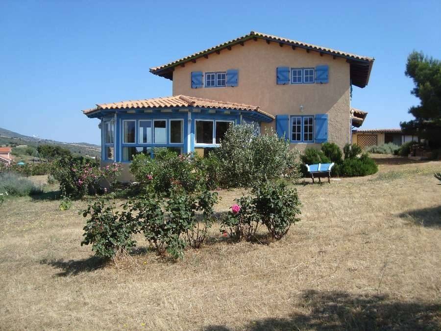 Perfect of both worlds, in the middle of Nature, yet very close from Athens, with sweeping 360-degree mountain and sea unobstructed views. House of the future, fully insulated and energetically self-sufficient. Ideal for lovers of Nature and space. About 40 different types of olive trees producing already Fruit trees: almond, walnut, apricot, apple, cherry, prunes,..etc Ornamental trees: oaks, pines, cypress, Lind trees, thyuas, fir trees,..etc Advantages: Energetically independent with solar panels and wind mill Hydrological independent with drilling Very well sound and cold isulated (double glazed windows and doors, wainscoting in wood, thick walls and glass wool Location: Marathon (Grammatiko)-North East Attica • 1 hour drive from Athens airport • ½ hour drive from the Ethniki Odos Patras-Thessaloniki (exit Kapandriti or Aghios Stephanos) • 1 hour drive to Pireas harbour • 3/4 hour to downtown Athens ( train at Aghios Stephanos or subway at either Dukissis Plakentias or Kifissia) • 3km (about 2 miles) from Sessi beach and the nearest village • Beautiful circular view on the southern Evvia Gulf and Penteli Mountain from 397m. altitude (1.320 feet)