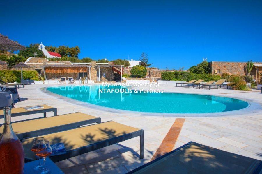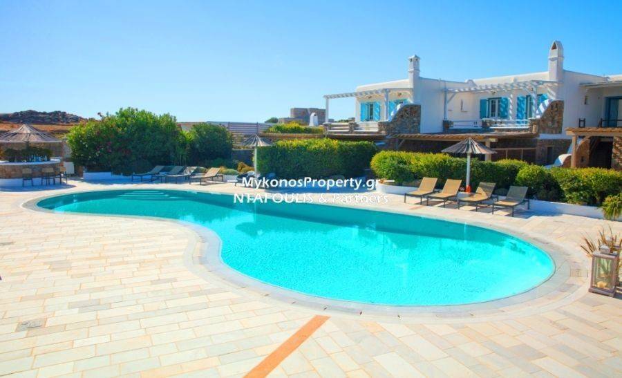 ID#: 1327830, Βίλα, Super Paradise, Ισόγειο, 750 τμ, Σε οικόπεδο: 6515 τμ, 2 επίπεδα, 22 Υ/Δ, 15 μπάνιο/α ==Συγκρότημα κατοικιών με θέα στη θάλασσα πολύ κοντά στο Super Paradise. Αποτελείται από 7 κατοικίες με 22 υπνοδωμάτια, μεγάλη κεντρική πισίνα με αίθριους χώρους. Αναλυτικά: -3 κατοικίες 158 τμ με 5 υπνοδωμάτια η κάθε μία, που αναπτύσσονται σε 2 επίπεδα: Στο επίπεδο της εισόδου υπάρχει ένα μεγάλο σαλόνι με τζάκι, η κουζίνα, ο χώρος της τραπεζαρίας, 2 υπνοδωμάτια και ένα μπάνιο. Στο ανώτερο επίπεδο υπάρχουν 1 υπνοδωμάτιο με en suite μπάνιο, 2 υπνοδωμάτια και 1 μπάνιο. Όλα τα υπνοδωμάτια έχουν δικό τους μπαλκόνι. -1 κατοικία 144 τμ με 4 υπνοδωμάτια που αναπτύσσεται σε 2 επίπεδα. Στο επίπεδο της εισόδου υπάρχει ένα μεγάλο σαλόνι με τζάκι, η κουζίνα, ο χώρος της τραπεζαρίας, 1 υπνοδωμάτιο και ένα μπάνιο. Στο ανώτερο επίπεδο υπάρχουν 1 υπνοδωμάτιο με en suite μπάνιο, 2 υπνοδωμάτια και 1 μπάνιο. Όλα τα υπνοδωμάτια έχουν δικό τους μπαλκόνι. -3 κατοικίες 50 τμ με καθιστικό, κουζινάκι, 1 υπνοδωμάτιο και 1 μπάνιο η κάθε μία. Όλες οι κατοικίες διαθέτουν ιδιωτικούς αίθριους χώρους και έχουν άμεση πρόσβαση στους κήπους του συγκροτήματος και τη κεντρική πισίνα. Το συγκρότημα διαθέτει άδεια για δημιουργία γηπέδου τένις, ένα μικρό αμπελώνα, ελιές και πηγάδι για το πότισμα. Έτος κατασκευής: 2004, Parking: 15 Θέα: Θάλασσα, Προσανατολισμός: Νοτιοανατολικός Απόσταση από: Αεροδρόμιο(m): 2300, Θάλασσα(m): 2500, Πόλη(m): 4000, Χωριό(m): 4000 Άλλα χαρακτηριστικά: Πόρτα Ασφαλείας, Αποθήκη, Τζάκι (4), Δορυφορική Κεραία, Internet, Ηλ. Συσκευές, Εσωτερική Σκάλα, Διπλά Τζάμια, Σίτες, Βεράντες, BBQ, Επιτρέπονται Κατοικίδια, Γεώτρηση, Χωρίς Κοινόχρηστα, Επενδυτικό, Επιπλωμένο, Διαμπερές, Προσόψεως, Φωτεινό, Κλιματισμός, Αυτ/το Πότισμα, Δέντρα, Πισίνα, Κήπος, Βαμμένο, Θέρμανση: Ατομική