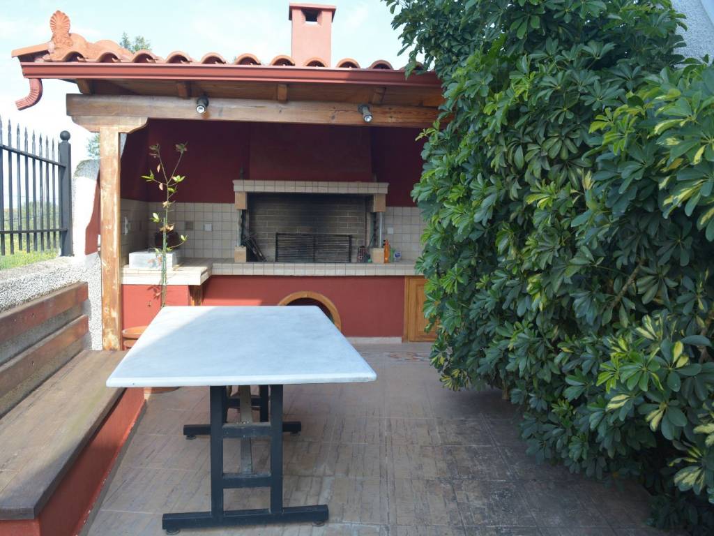 Ο εξωτερικός χώρος του ακινήτου περιλαμβάνει 70 τ.μ. βεράντες περιμετρικά στεγασμένες με κεραμοσκεπή, μεγάλο κήπο με πλήρως εξοπλισμένο μπάρμπεκιου(νεροχύτη,επαγγελματικό πετρογκάζ,ντουλάπια,στέγαστρο ,μαρμάρινο τραπέζι και πάγκο κουζίνας ).