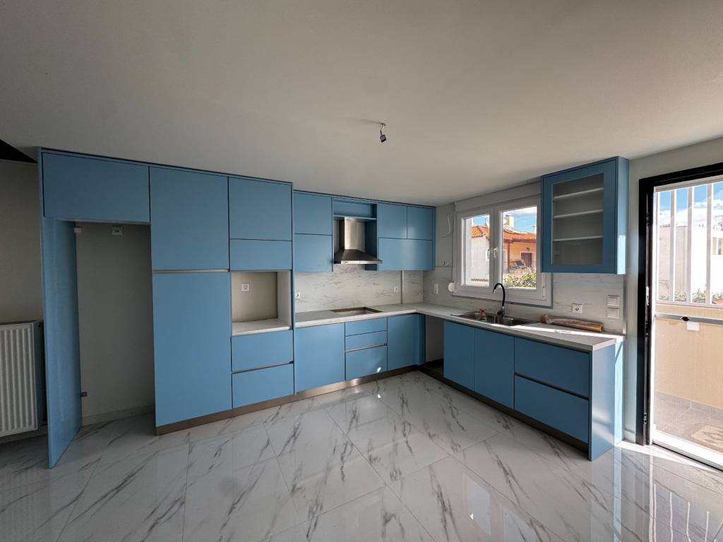 For Sale: A newly built, bright, and modern first-floor apartment with a total area of 108 sq.m., constructed in 2024, situated on a 750 sq.m. plot in the heart of Eretria, Evia—just 170 meters from the sea. Please note that the furniture shown in the photos is not included in the sale. Only the electrical appliances listed below are included. The apartment features an internal loft (two mezzanine levels) and consists of three bedrooms, a spacious living room, a functional kitchen, one bathroom, one WC, and an internal storage room. The residence is offered fully equipped, including a built-in kitchen with oven and a dishwasher. It is fitted with a heat pump for energy-efficient heating, a fireplace, brand-new awnings and sliding insect screens, as well as wardrobes in all bedrooms. Additional features include a private parking space within the plot and an external elevator providing convenient access to the first floor. This is a high-quality modern home that combines comfort, functionality, and elegant design, located in a prime area close to the sea and within walking distance of all shops and amenities in Eretria. It is an ideal choice for a permanent residence or a holiday home, offering a high standard of living in a peaceful and attractive environment.